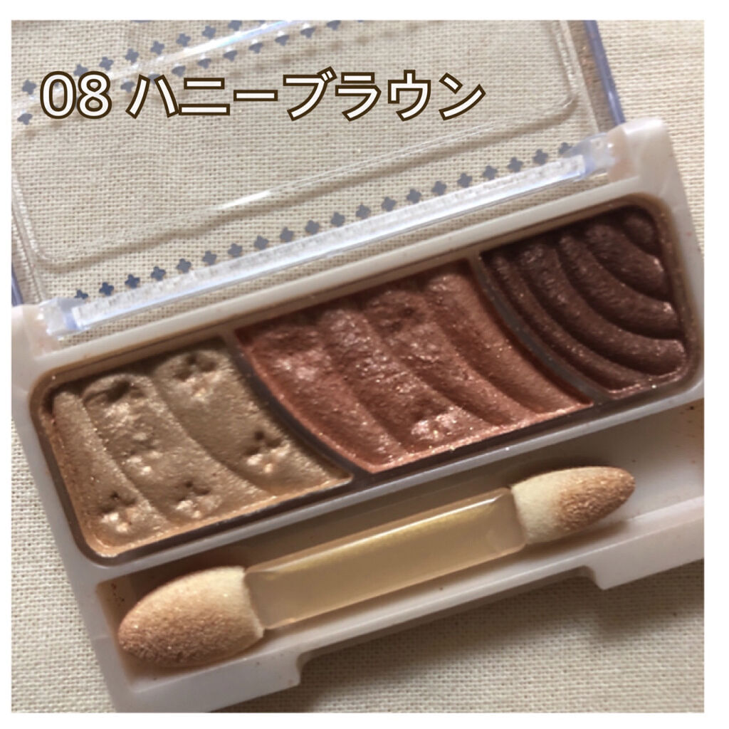 - 3色で簡単に明るく大きな目元に。 しっとり感触のアイシャドウ。 くすみを飛ばす明るさベース、ひとえ・奥二重の方でも幅広く塗れる肌なじみの良い中間色、 濃密高発色の締め色が目の輪郭を強調し大きな目元に。 微細パール配合でくすみを飛ばし、明るい目元へ。