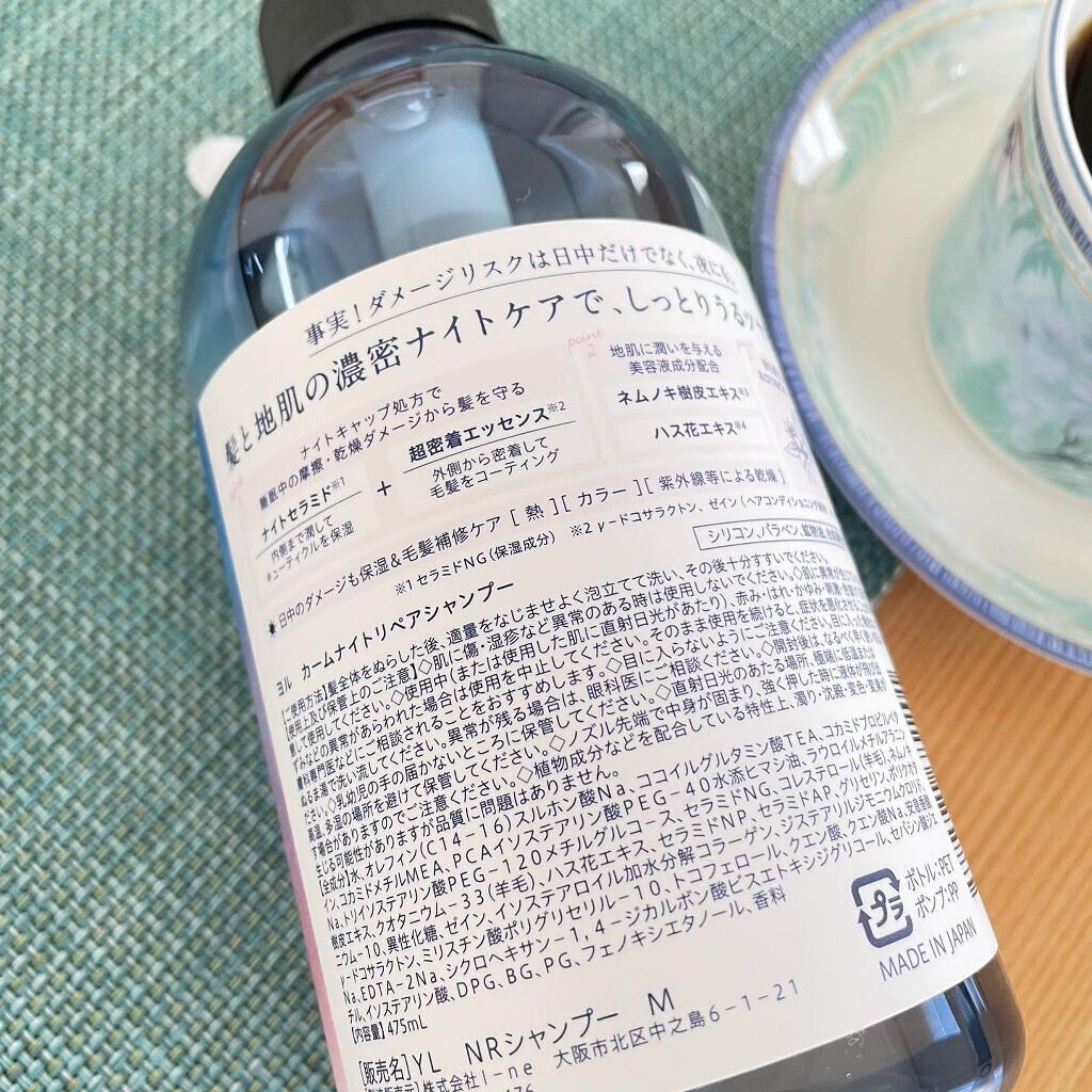 - ダメージリスクは日中だけでなく、夜にも。髪と地肌の濃密ナイトケアで、しっとりうるツヤ髪へ。 ナイトキャップ処方で睡眠中の摩擦・乾燥ダメージから髪を守り、地肌に潤いを与える美容液成分配合。 シャンプー:シリコン、パラベン、鉱物油、合成着色料フリー トリートメント:パラベン、鉱物油、合成着色料フリー ◎ネロリ&ピオニーの香り
