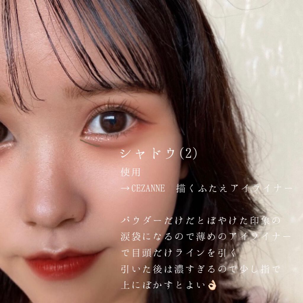 \簡単涙袋メイク/・なしメイクによって涙袋メイクをなしにするのもあり!印象変わるので一度試してみて欲しいです!・コンシーラー塗る涙袋を作りたい箇所にコンシーラーを塗ります!パウダーも塗っておくと崩れにくいです!写真の涙袋はコンシーラー塗りすぎ...