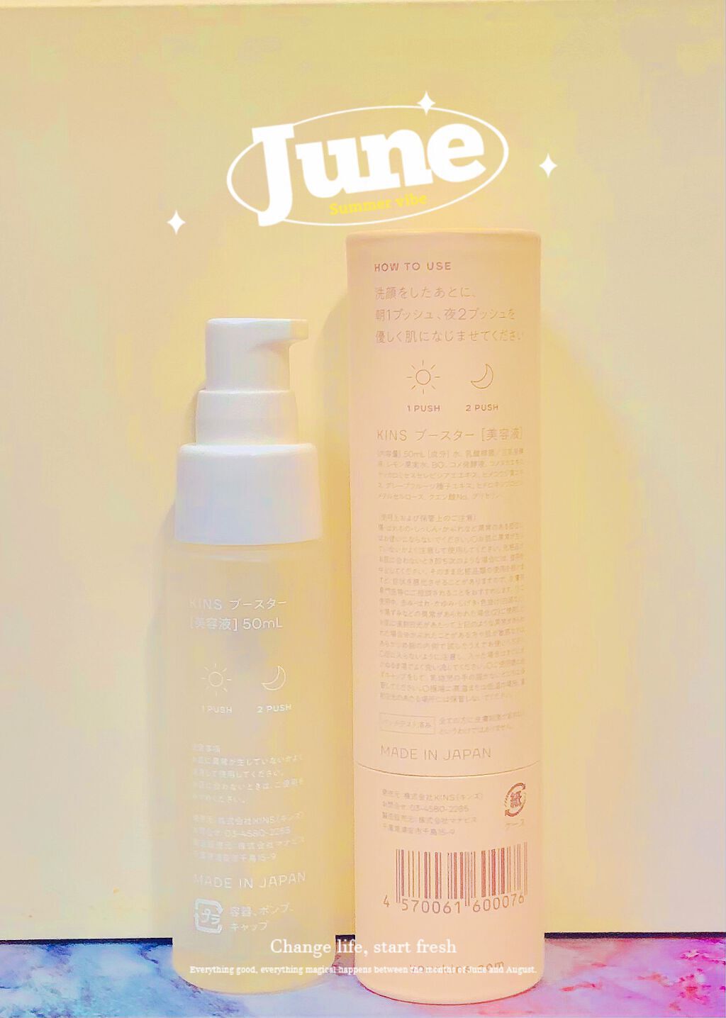 - KINS BOOSTERは、成分・使用方法共に肌の菌を育てることに特化した、スキンケアの新提案 「菌に直接アプローチできるブースター」。KINS ESSENCEの主成分でもあり、400種類以上もの栄養素を含み善玉菌のエサとなる乳酸菌生産物質とコメヌカエキス、コメ発酵液の3種類の発酵成分を組み合わせています。 洗顔後、スキンケアの最初に使っていただくことで、皮膚常在菌のはたらきを妨げることなく、肌をみずみずしく潤します。