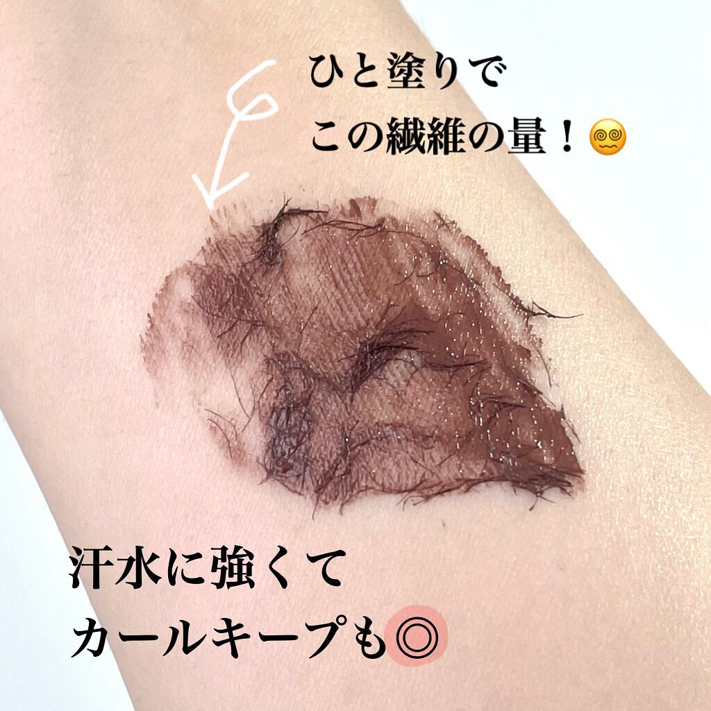 繊維が入っていてサッと塗るだけでめちゃくちゃ伸びる! これ、下地??ってくらいに伸びます笑 その後に、マスカラをつけても繊維が落ちることもなくキープ! 長さとボリュームの両方欲しい方に特におすすめ! まつ毛のバサバサ感があまり好きじゃなく自然にロングしたい方には向いてない!