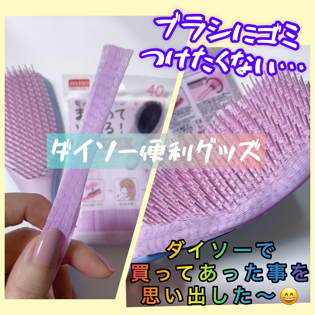 ブラシケアネットを上からブラシに差し込んで使うことで、ネットを外す時に髪の毛やほこりをまとめて取ることができます✨ 差し込み、取り外しは簡単。 ピンクのネットで差し込むと少し見た目は不気味ですが、掃除する手間がなくなり便利です☺️ 40枚入りで¥110なのでコスパは良いと思います🙆♀️