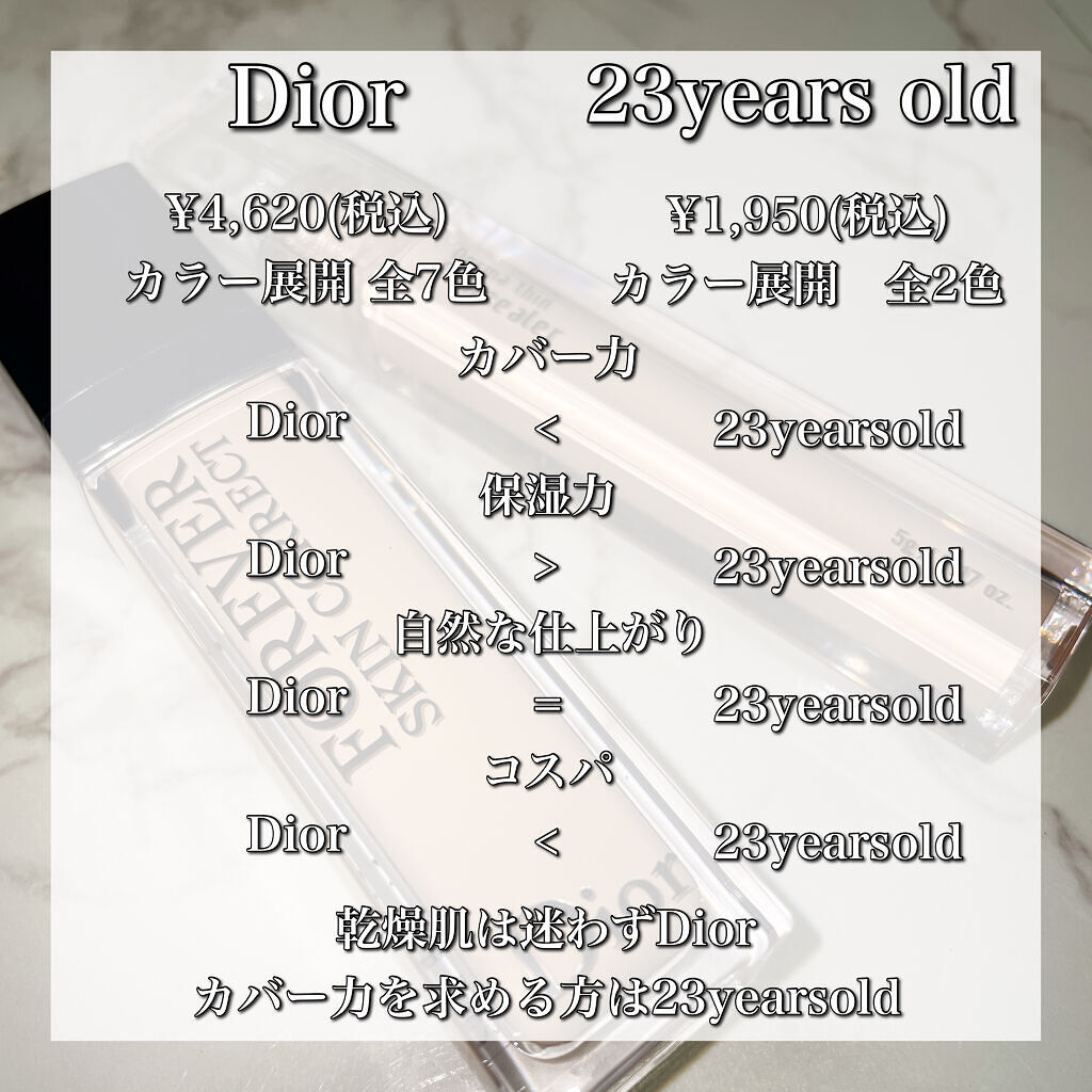 Dior ディオールスキンフォーエヴァースキンコレクトコンシーラー0.5Nニュートラル¥5,72023yearsoldダーマシンコンシーラー0.5号ピンクベージュ¥1,650ディオールを1品リピしたあとに、23yearsoldのダーマシンコン...