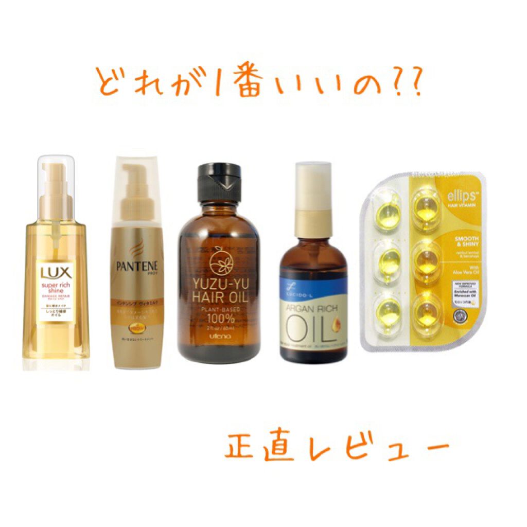 Luxです!! これは補修力がやばい😱 髪の毛がパシパシな私のお母さんでさえも潤います😹 匂いもそこまでキツくなくて嫌いな人はいないかと...。これはホントにオススメ✨ パンテーンです!! このヘアオイル、お母さんはあんまり潤わないって言ってました🥺 なので保湿力はあんまりかも...。 ですがいい匂いだし、何より安い🩰 この値段でここまでなら良いかなって思います♡ ルシードエルです!! これはTikTokですごい沢山見たので買ってみたんです! 私はそこまで思わなかったんですけど家族からは臭いと言われました...。 好き嫌いのある香りかも知れません😭 プレサです!! これはとにかくいい匂い🙊 朝、家出る前につけると外でも香る! モテるかも...💭💕 1滴ずつ出るので出しすぎの心配無し🌷 エリップス!! これはもう皆さんも知ってますよね💎 ((キャンドゥで110円で売ってるよ🛒 サラサラになりますよね! でも匂いが少しきついかも...。 私は黄色と黒が好きです💓 (個人的な意見でゴメンなさい😭🙏😞)