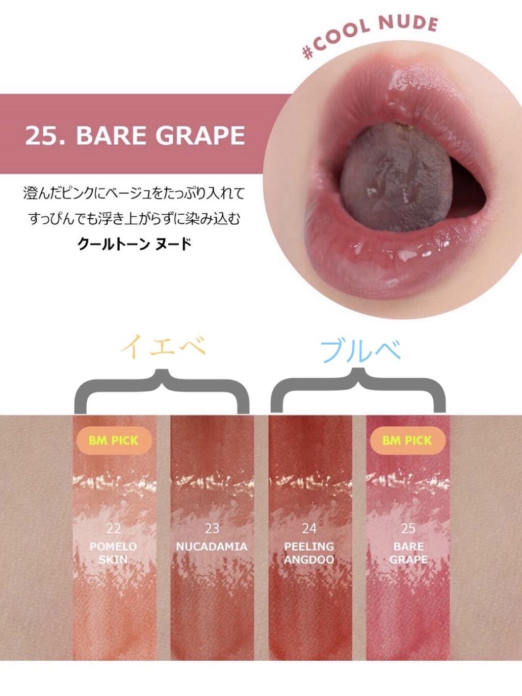 🎐ブルベ夏、大優勝🍇Rom&ndジューシーラスティングティント#25BAREGRAPE🍇︎︎︎︎☑︎値段→¥1,758(Qoo10メガ割1+1)#22POMELOSKINとセットでこのお値段でした🔆年中無休・オフィスメイク・休日メイクどん...