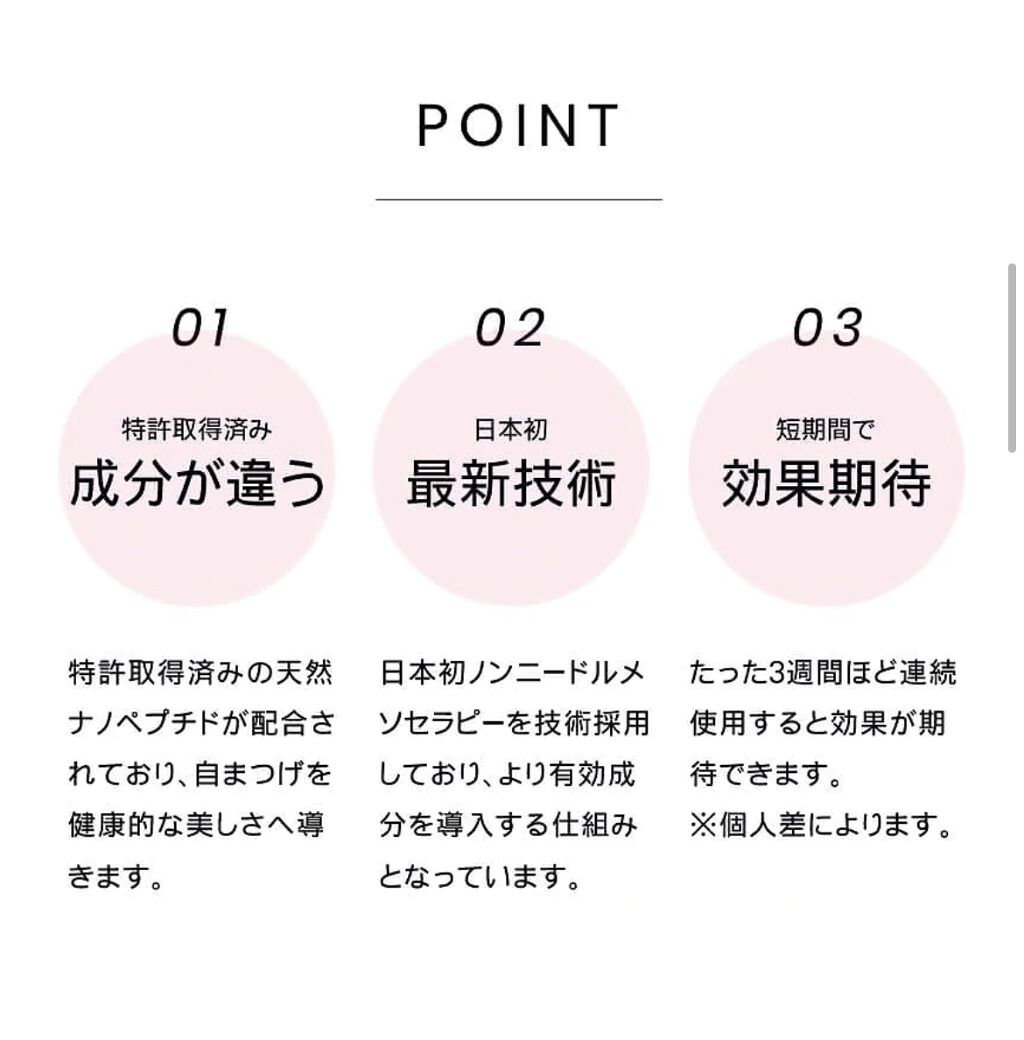 アプリケーター部分が変わっていて 先端に丸いスポンジがついてるのでたっぷり液をつけることができました! 長さよりも濃く太くなるのが実感できた‼️ 全体的な毛のボリューム感がでて密度が濃くなる感じ! 長さのスピード感はゆっくりだけどボリュームを出してくれる刺激感を感じにくくデイリーに使えるので気になる人はぜひチェックしてみてください!