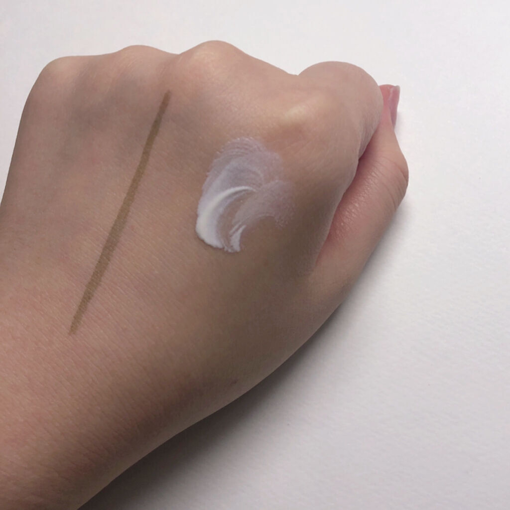 まずテクスチャー! 思ったより硬めかな?と思いましたが、塗り広げてみると…めちゃくちゃ伸びる!! ちょっと高いかな?って思ってたけどちょっとでめちゃ伸びるから、コスパいいのかも… 伸びがよくて硬くなく、かといって垂れたりせず塗りやすい柔らかさでした🥰 次にトーンアップ効果! トーンアップはめちゃめちゃいい感じです! 真っ白になるわけではなく、自然にくすみを飛ばしてくれて、顔色を明るくしてくれます✨ ベースの色が黒めな人ほどトーンアップ効果を感じると思います! 最後に崩れやすさです! これ!!崩れません!!✨ いつもはスキンアクアのトーンアップの日焼け止め使ってて、汗かいたあとはベタベタして擦ると消しカスみたいなのがでちゃってたんです… これは保湿されてる感じがして、ベタベタはしないけどずっとしっとりしてます👍 UVカット効果が同じくらいで、こっちの方がトーンアップ効果が好きだし、崩れないしでとても良かったです🥰