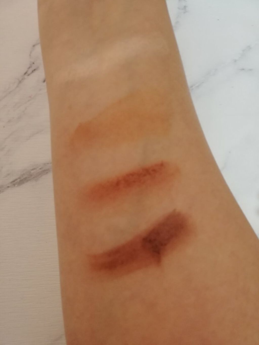 上の段の2色をよく使います、地黒イエベの肌に合っていて目元を明るくきれいに仕上げてくれます。 これもとっても可愛くて涙袋に使うことが多いです。またまたこれも私の肌色に馴染み盛ってくれます。画像より塗ると明るいです。