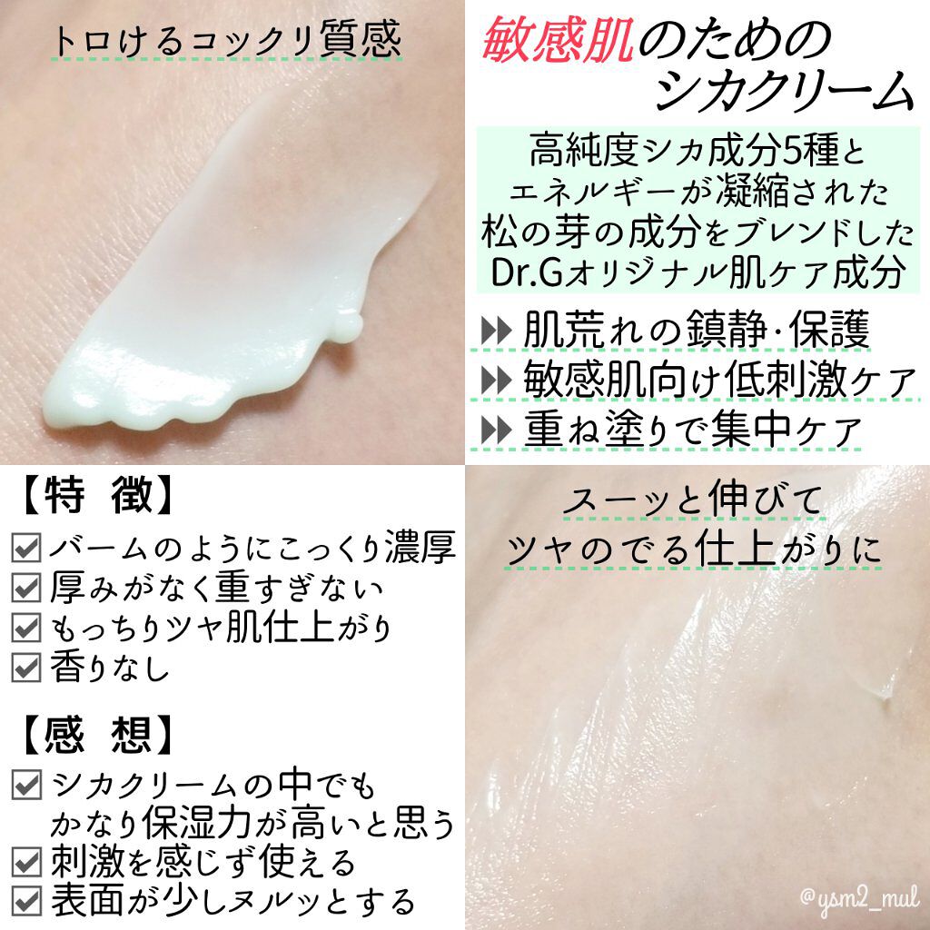 - 高純度のシカ成分とな松の芽の成分が混ざり、 Dr.Gだけのシカコンプレックスが、 敏感肌を健やかにし、 肌荒れを防いでくれます。