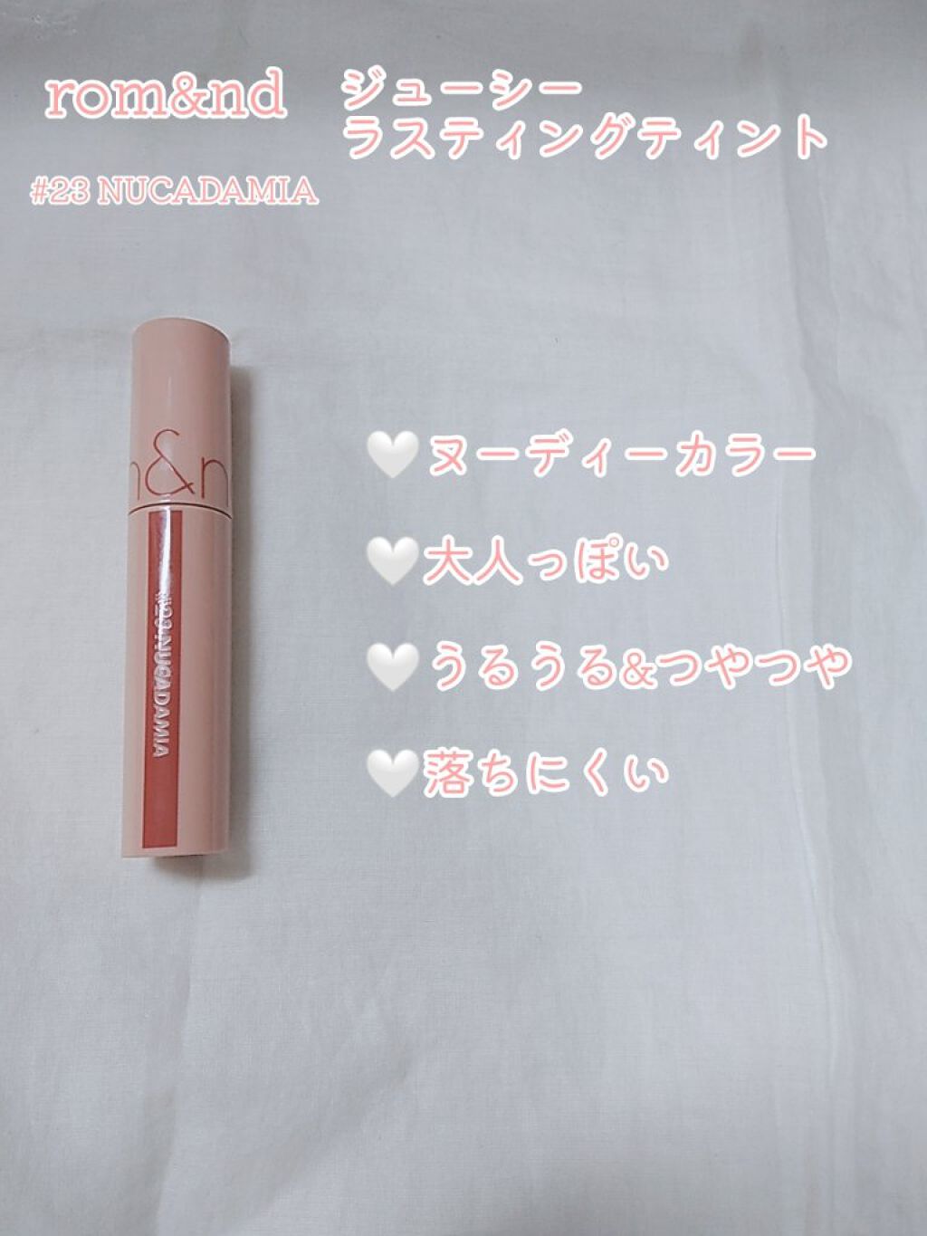 香りも甘い匂いで付け心地も良くて 色味も可愛いです✨ そこまでペタペタしないからあまり気にならないし乾燥もあまり感じないからロムアンドのリップ良いです👍 塗った瞬間から唇がプルプルのツヤ唇に なって可愛いです😍