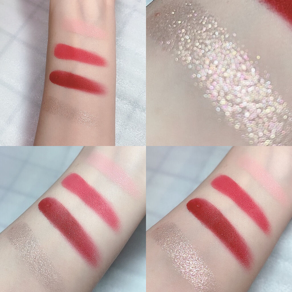 パッケージの上蓋がウォーターシールみたいにスパンコールが揺れ動くオシャレな作りで、オシャレなデザインなのが魅力。 ラメがめちゃくちゃかわいいしマットカラーの発色がえげつないのよ。 落ち着いた色合いのマットカラーも入ってるから意外と普段メイクにも使えちゃうというね。