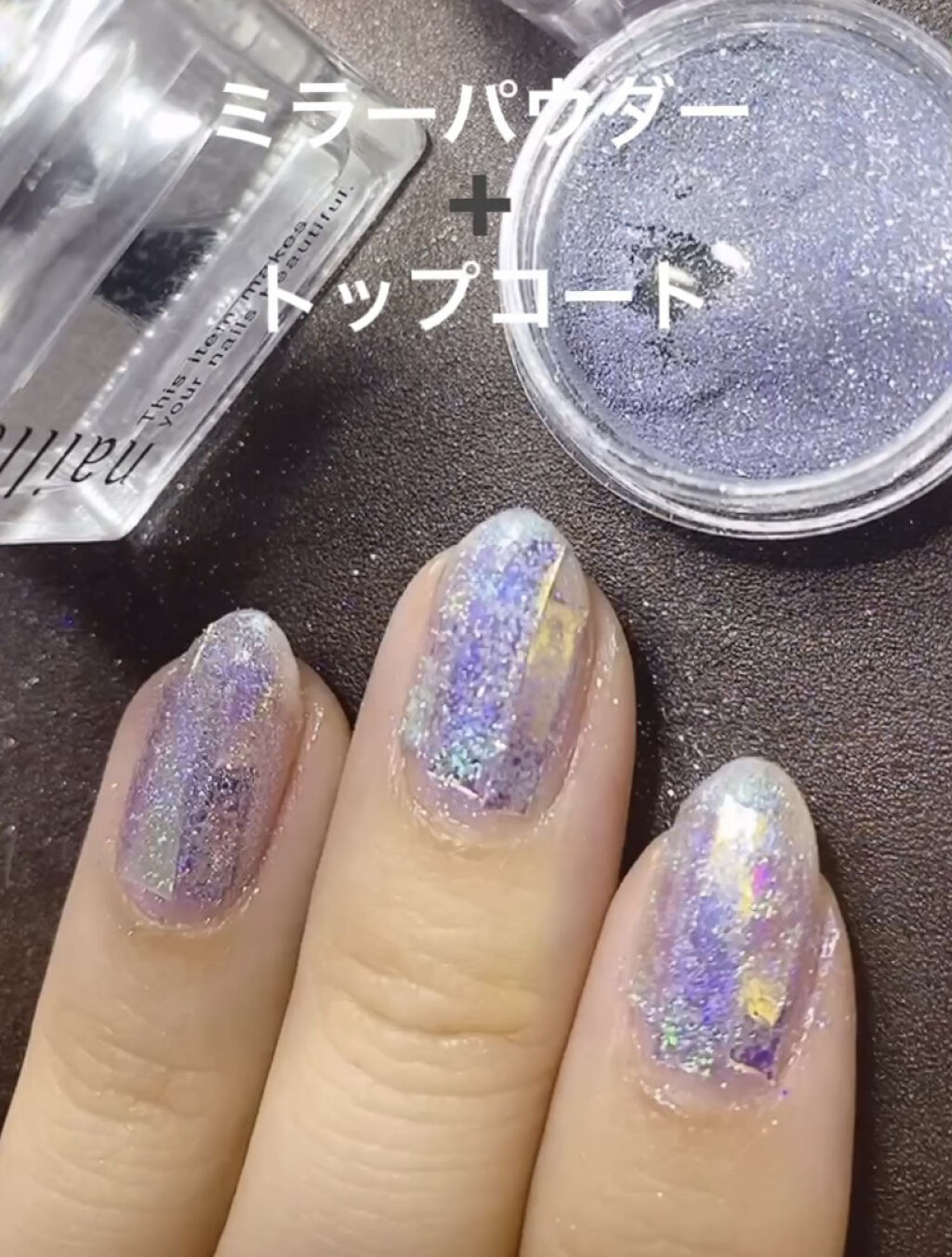 2021年のネイルデザインでバズってる、ガラスフレンチをやってみました💕とにかくキラキラが可愛い💎ファンデーションカラーズの透明感ある色と、純銀のホログラムの相性抜群でした😍✨是非参考にしてみて下さい💕①ラベンダーピンクを4度塗り❣️②フレン...