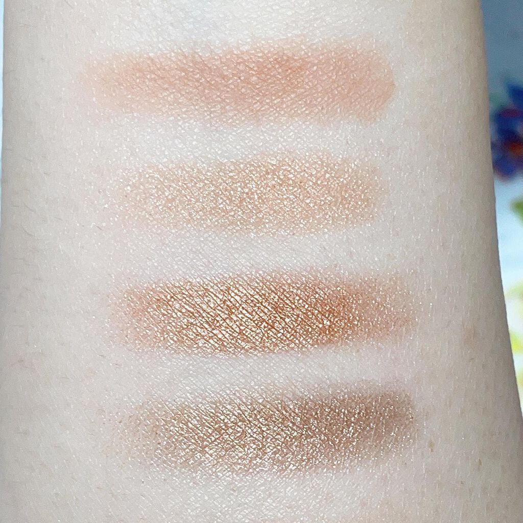 ベージュベース × ピンクパール × ゴールドパールの 3色の組み合わせです! シナモンと言う名前なので ベースもベージュ系なので 可愛いと言うより 大人な印象になります! 数量限定の日本限定色です! 4色のチークの中で 1番 色味が濃く出ます! ハイライトとかよりも チークとして使用するのが1番良いと思います! 目元とリップに重ねると 顔全体に統一感が出来て 大人な女性なヘルシー顔になるので オフィスメイクや 幅広い年齢の方に使用出来ます! 使用感も柔らかく しっとりしているので保湿効果もあります!