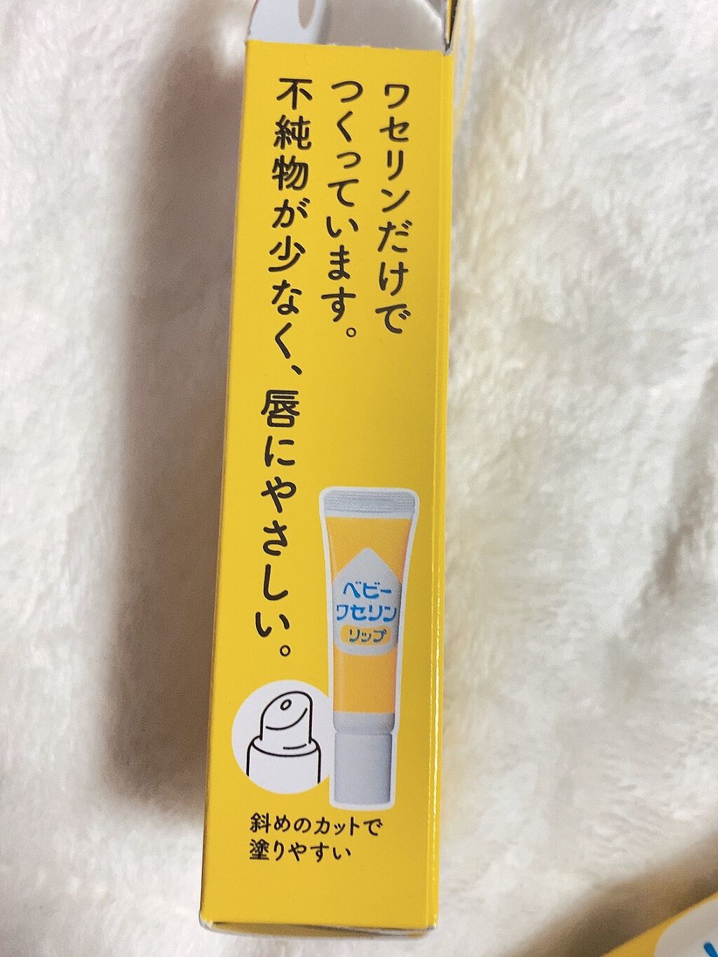 - 子供から大人まで安心&手軽に使える「ベビーワセリンリップ」 ベビーワセリンは、酸処理を伴わない精製方法を採用しており無香料、無着色、パラベンフリーの商品です。従来のワセリンと比べ、無添加で不純物が少なく、やわらかくて伸びがよいため赤ちゃんから大人まで安心してご利用頂けます。本商品は、チューブタイプで先端が斜めにカットされているため、リップとして便利なタイプです。