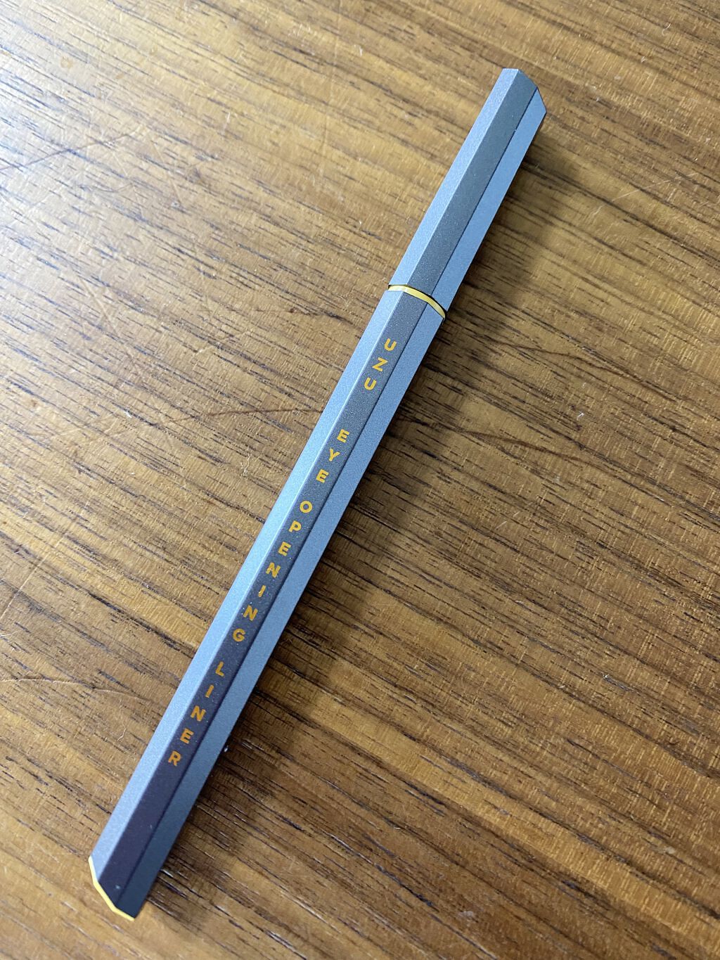 👀UZUBYFLOWFUSHIEYEOPENINGLINERダークネイビーをネットで購入。大和匠筆のフェルト筆で、太くも細くも跳ね上げも綺麗に描ける。色は思っていたよりブルーが明るい印象。#UZUBYFLOWFUSHI#EYEOPENINGL...