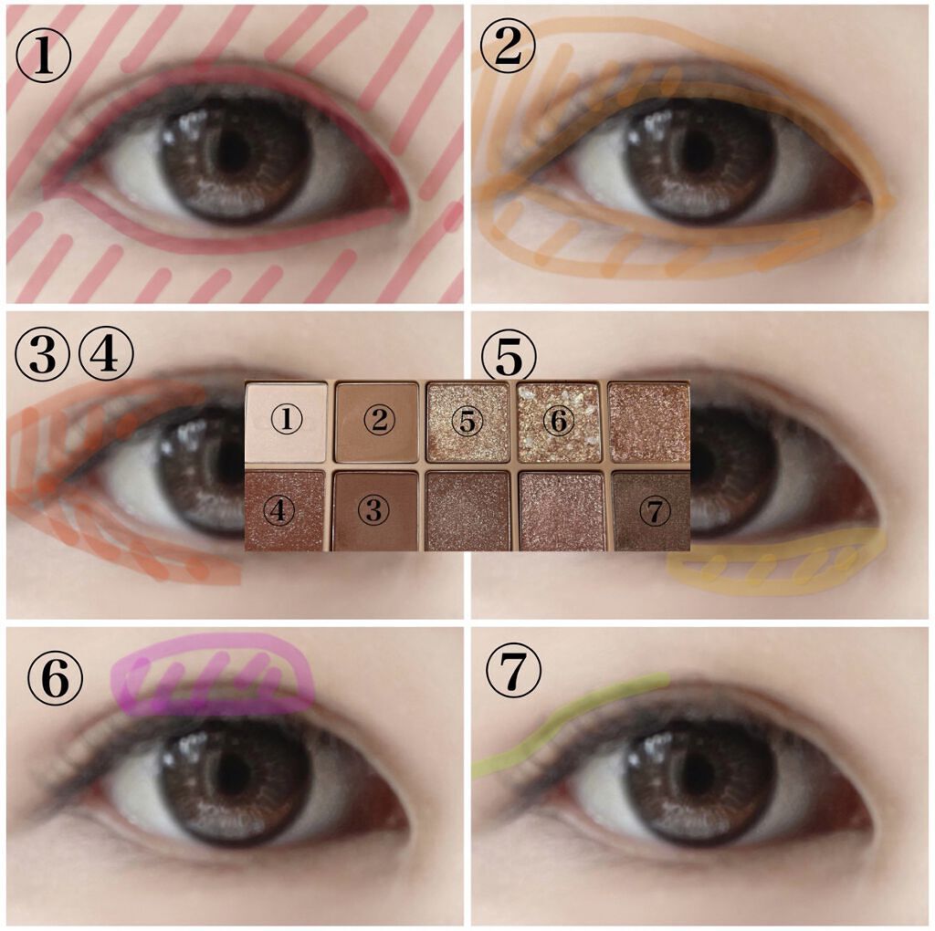- ひとつのパレットにマット、シマー、グリッターなど多様な質感を贅沢に使用。塗る順序やカラーの組み合わせを変えるだけでデイリーメイクにも、特別な日のお出かけメイクにもできる優れもの。また粉飛びせず、まぶたにしっかり密着します。