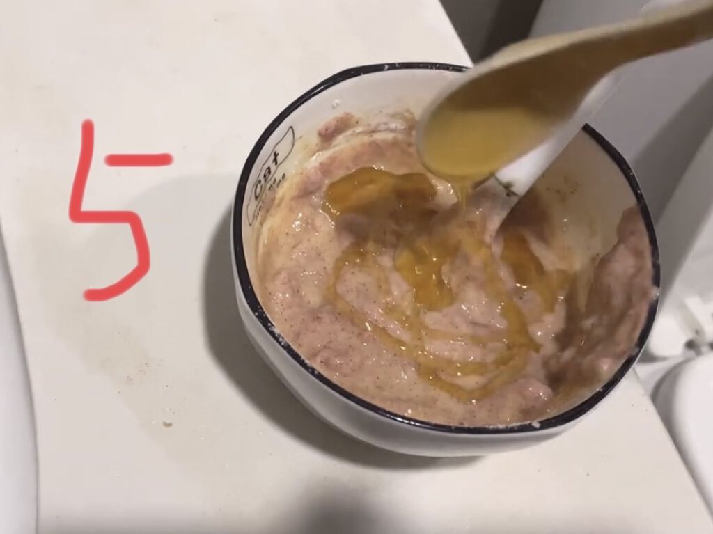 材料1小豆粉(オートミール)2アロエジェル3レモン4はちみつ5卵 作り方 小豆粉(オートミール) 60g アロエジェル 25g レモン 一個 卵 一個 はちみつ 10ml 混ぜる...