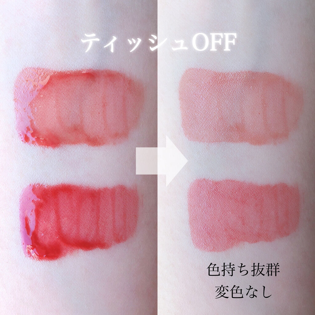 | リップティントランキング第49位 | 唇にピタッと密着しているような感じがあり、なじみが良い 1度塗りだと薄づきでナチュラルな発色になり、塗り重ねていくとしっかり発色して可愛い | 詳細を見る | |