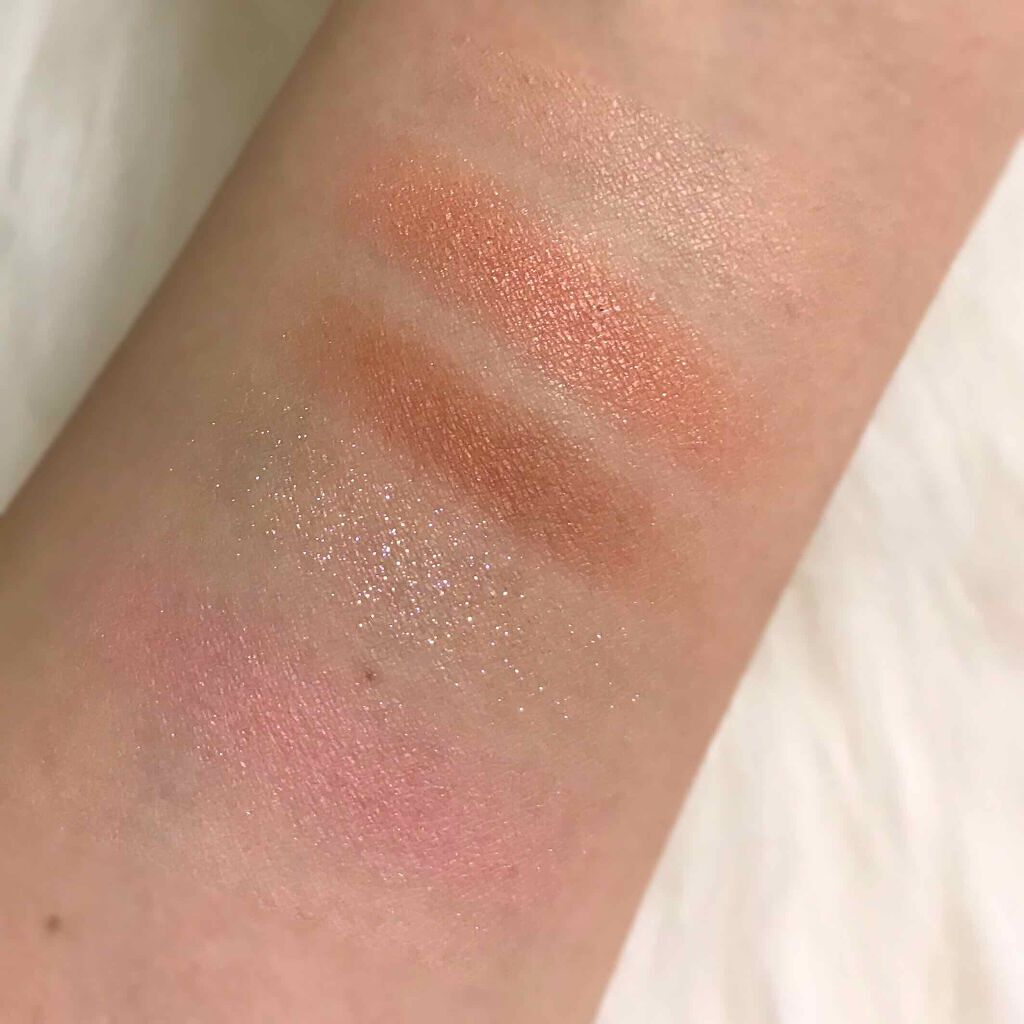 - <001 スウィートピンク> タルク、マイカ、グンジョウ、トリ(カプリル酸/カプリン酸)グリセリル、シリカ、窒化ホウ素、ステアロイルオキシステアリン酸オクチルドデシル、メチルプロパンジオール、ミリスチン酸Mg、マンガンバイオレット、ジメチコン、ミネラルオイル、プロパンジオール、赤酸化鉄、ヒドロキシプロピルビスパルミタミドMEA、ステアリン酸ジメチコノール、黄酸化鉄、ステアリン酸Mg、黒酸化鉄、トリエトキシカプリリルシラン、酸化チタン、メチコン、水 <002 ハローピーチ> マイカ、タルク、ホウケイ酸(Ca/Al)、酸化チタン、シリカ、ジエチルヘキサン酸ネオペンチルグリコール、フェニルトリメチコン、赤酸化鉄、グンジョウ、リンゴ酸ジイソステアリル、ヘキサ(ヒドロキシステアリン酸/ステアリン酸/ロジン酸)ジペンタエリスリチル、ネオペンタン酸イソステアリル、ステアロイルオキシステアリン酸オクチルドデシル、ミリスチン酸Mg、マンガンバイオレット、メチルプロパンジオール、ジメチコン、マカデミア種子油、ポリブテン、ステアリン酸Mg、プロパンジオール、トリエトキシカプリリルシラン、酸化スズ、メチコン、水 <003 ベイクド ジンジャー> タルク、マイカ、グンジョウ、シリカ、マンガンバイオレット、酸化チタン、トリ(カプリル酸/カプリン酸)グリセリル、赤酸化鉄、窒化ホウ素、黄酸化鉄、黒酸化鉄、ミリスチン酸Mg、ミネラルオイル、ステアロイルオキシステアリン酸オクチルドデシル、メチルプロパンジオール、ジメチコン、プロパンジオール、黄色4号、ヒドロキシプロピルビスパルミタミドMEA、ステアリン酸ジメチコノール、ステアリン酸Mg、トリエトキシカプリリルシラン、水 <004 グラムローズ> ホウケイ酸(Ca/Al)、タルク、ホウケイ酸(Ca/チタン)、マイカ、ジエチルヘキサン酸ネオペンチルグリコール、酸化チタン、フェニルトリメチコン、シリカ、ミリスチン酸Mg、リンゴ酸ジイソステアリル、ヘキサ(ヒドロキシステアリン酸/ステアリン酸/ロジン酸)ジペンタエリスリチル、ネオペンタン酸イソステアリル、ステアロイルオキシステアリン酸オクチルドデシル、グンジョウ、ステアリン酸Mg、メタクリル酸メチルクロスポリマー、メチルプロパンジオール、ポリブテン、プロパンジオール、酸化スズ、ジメチコン、ラウロイルリシン、マンガンバイオレット、赤酸化鉄、トリエトキシカプリリルシラン、黄酸化鉄、メチコン、水