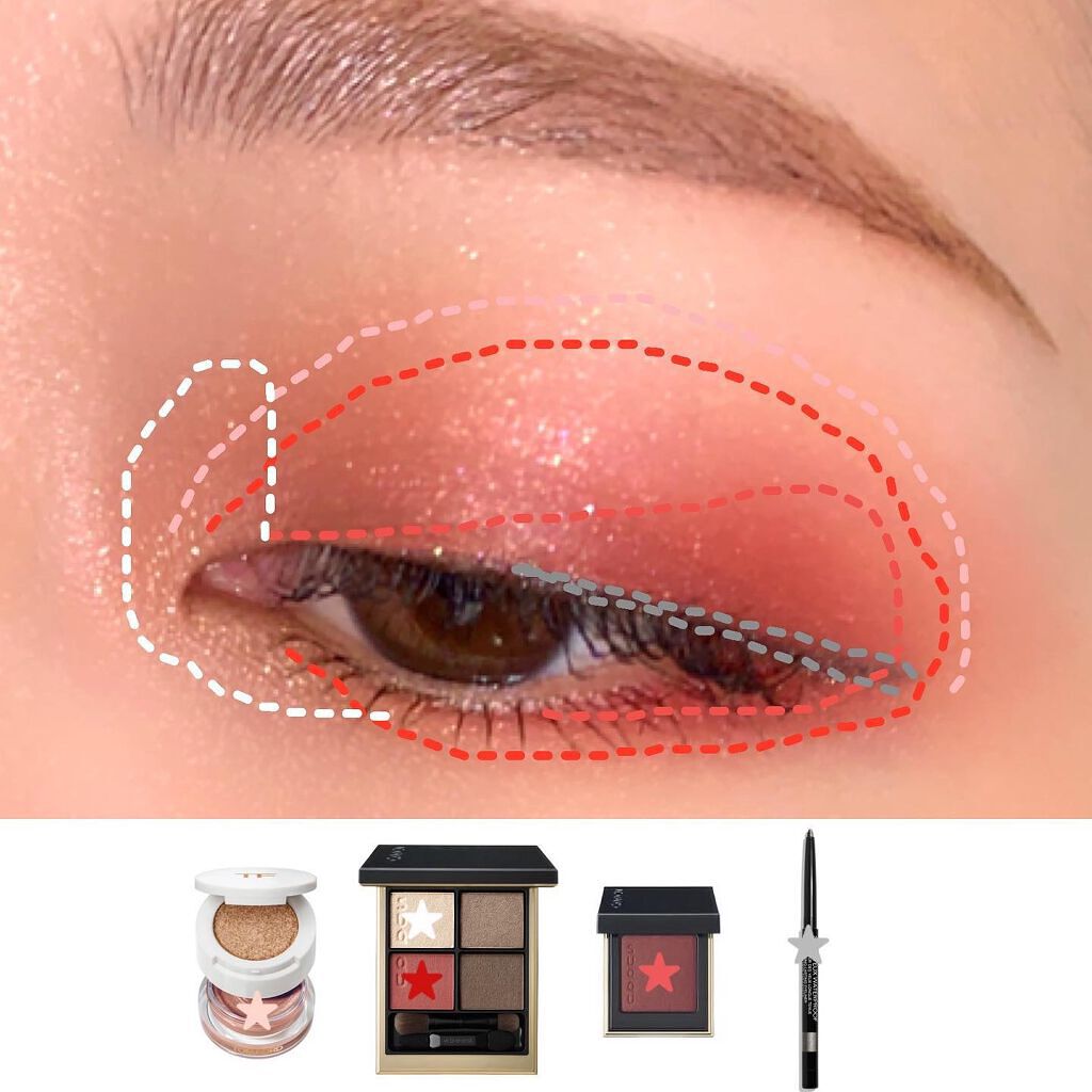 今回の新色は"まぶたに濡れたような光沢を放つ艶、光を操る立体感をプラスしリュクスなまなざしを叶えてくれる"というプリズムフォーミュラ。 確かにいつもとはちょっと違う…良いですこれ🫶❤️ ヌメッと面で光るようなツヤ感✨ テクスチャーは刻印ありタイプ、ツヤはクリームタイプに近いと思います🥰 要は刻印ありとクリームの良いとこ取りですね! ゴールドと柔らかいレッドの組み合わせ。アプレスキーとエレクトリックチェリーの中間のような色合い🤔 ゴールドとピーチカラー。今回の3色の中では一番黄みが強い。 青みがかったローズが可愛い。ぱっと見はわからないけど左上にみんな大好き青ラメが…!!