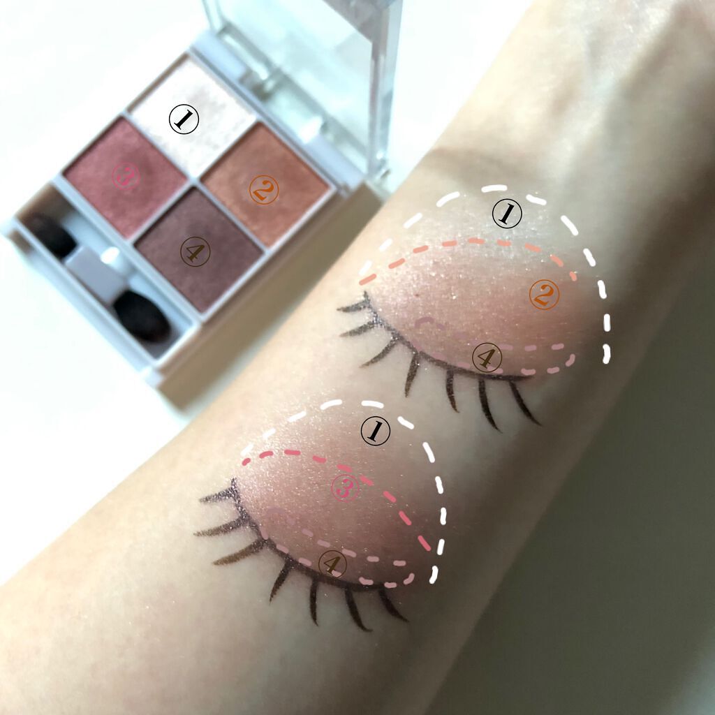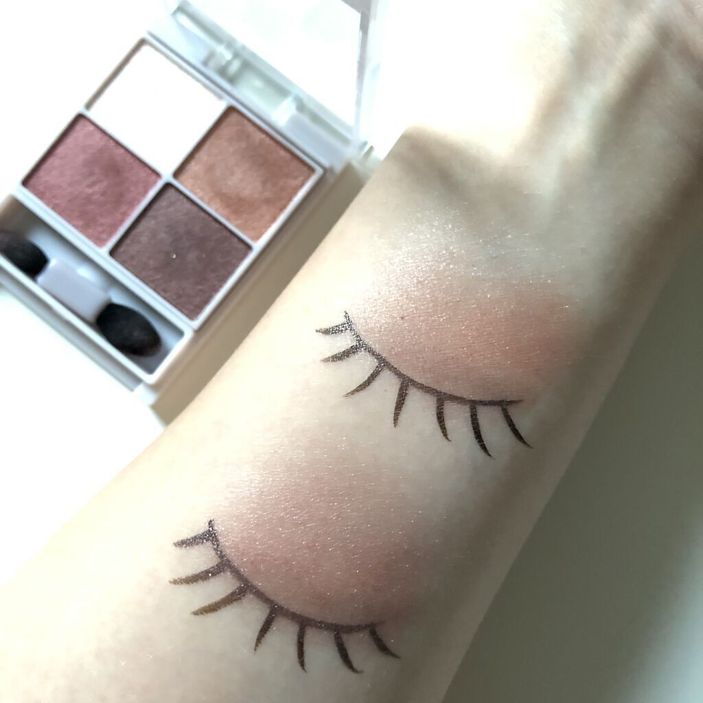 使ってみて驚いたのが、真ん中(②)のラメ✨ 下まぶたにのせるとキラキラうるうるの涙袋が完成! しかもピンクブラウンのような色がついてるから、自然と大きな目元が演出できます✨ 色々なラメを使ってきたけど、パーツリサイズシャドウのラメが涙袋にぴったり! 上まぶたには①と③でマットに。下まぶたは②でうるうるに仕上げるのにハマっています✨ ピンク系は目が腫れぼったく見えがちですが、こちらのシャドウはその心配もありません。 ラメ落ちなどもなく、とてもお気に入りのシャドウです♡
