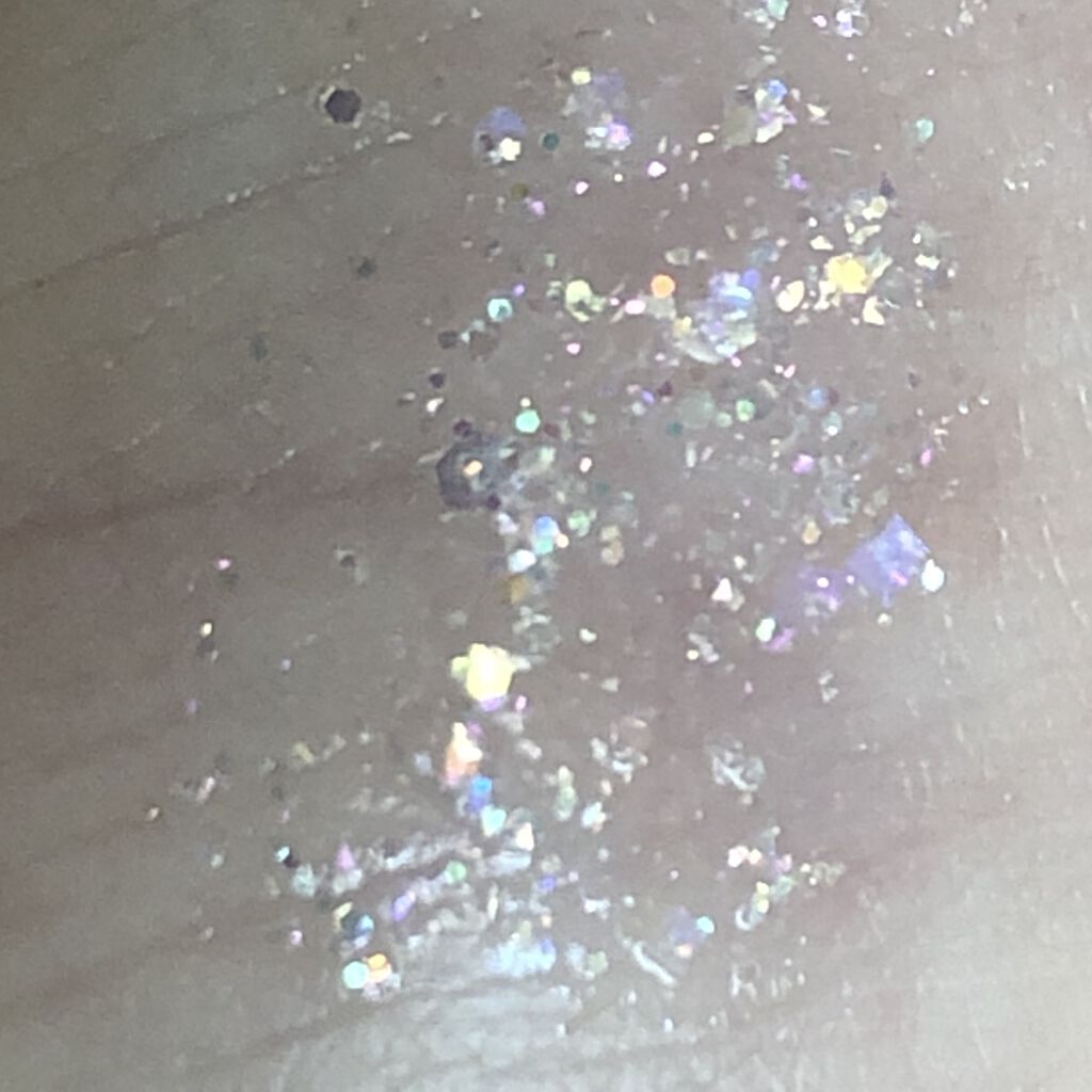 細かいラメと大きめのホログラムが混じっています꒰ˆ•ﻌ•ˆ꒱ 瞬きする度にキラキラしてかわいいです。 よく見ると色々なカラーのラメでてきていますがつけると自然ですฅʕ •ﻌ• ʔฅ