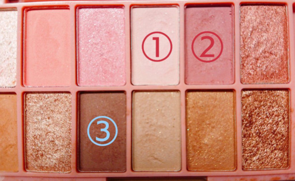 アイメイクのパターン①ベースカラーをアイホール+涙袋 (rom&nd…左上) (CANMAKE…右上)②ブラウンをアイホール3分の1+下目尻3分の1 (rom&nd…右下) (CANMAKE…左下)③ラメをアイホールの中央 (rom&nd…左下) (CANMAKE…左上) アイシャドウCANMAKE…明るめの発色rom&nd…ちょっと暗めの発色 rom&nd…濡れツヤ感でキラキラCANMAKE…自然なツヤ感