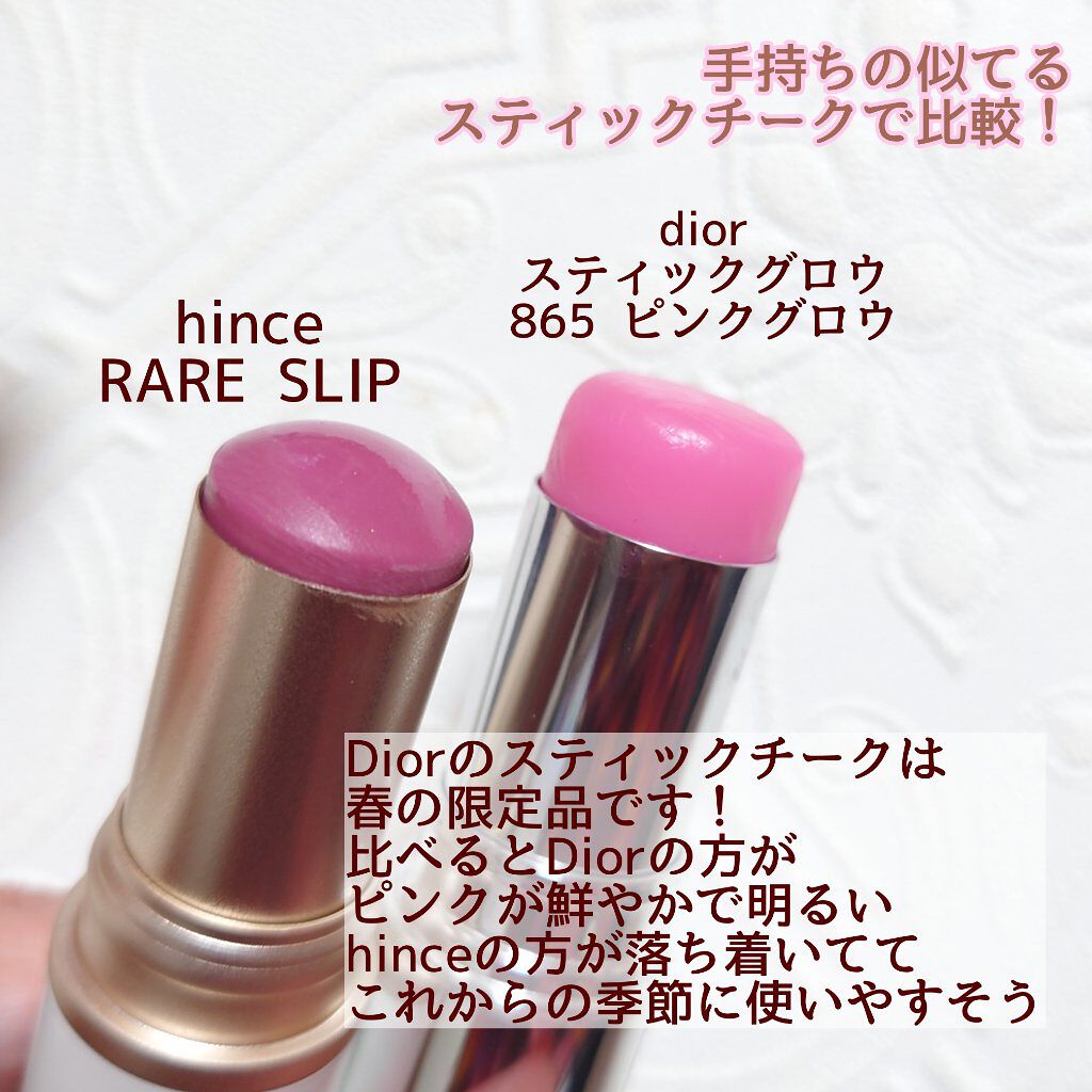 大好きで使っていたヒンスのレアスリップ 他のカラーと比べてあまり人気なかったからか廃盤になっちゃったんですよね🥲 リルモーヴの方が発色が良くってひと塗りでふんわりほっぺに仕上がります レアスリップの方が水光感のあるツヤで保湿力がしっかりしています