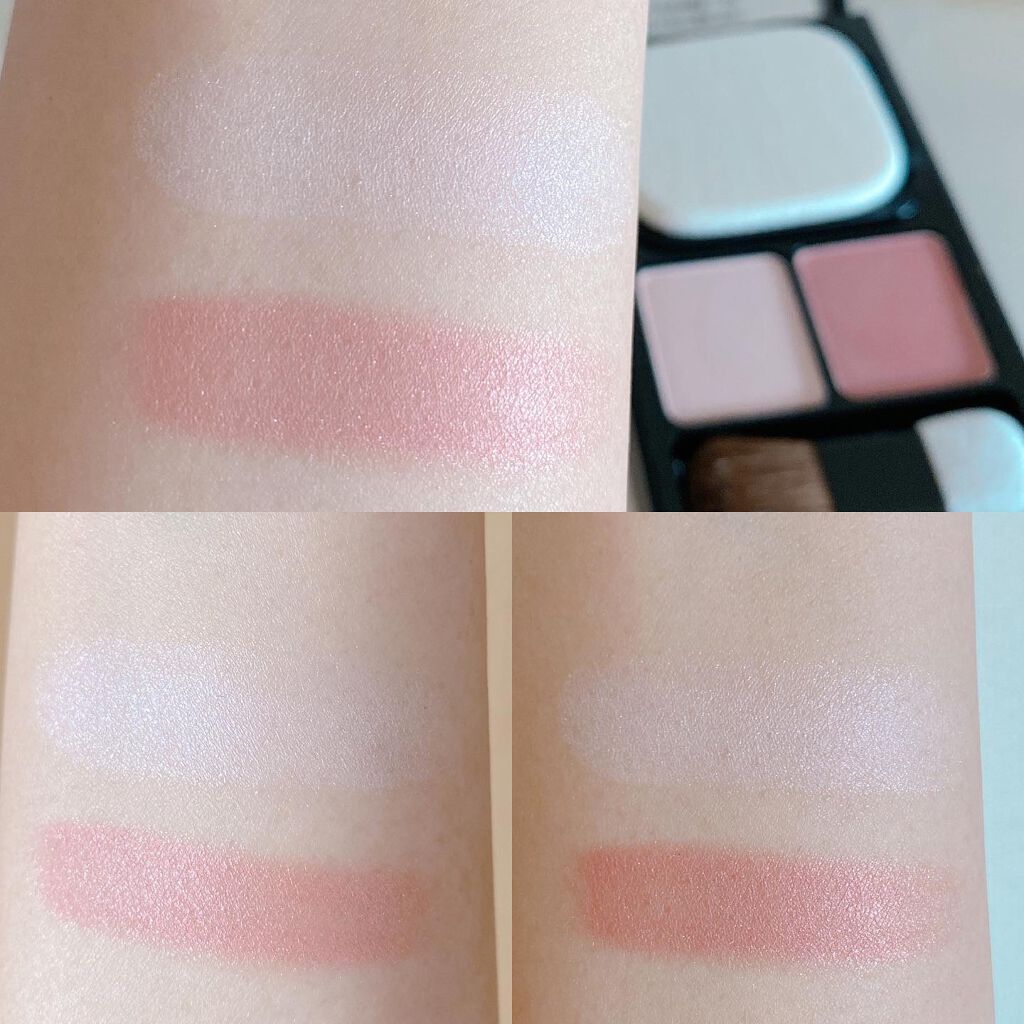 キメの細かいパウダーが肌にするっと溶け込むような使い心地✨ パールハイライトは華やかにきらめくシャンパンカラー。鼻筋や頬の高い位置に🫧✨ 繊細なきらめきがとても綺麗💓 ハイライトで透明感が出て、シェーディングはナチュラルに引き締めてくれてこのパレット重宝してる🥹💖