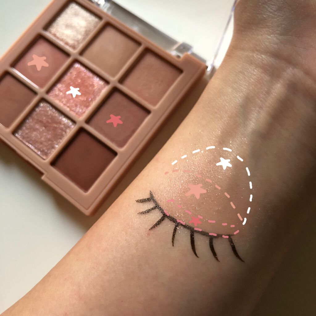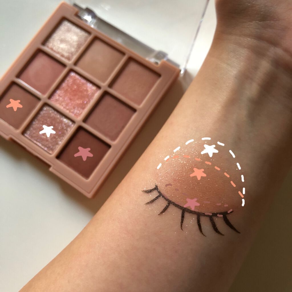 [gifted]デイジーク様からいただきました♥投稿義務ないけど可愛いのでスウォッチを🫴🏻🏷️DasiqueShadowPalette#05SunsetMuhlyパレットで見るとピンクが強く見えるけど、肌にのせるとブラウンがより綺麗に発色する...