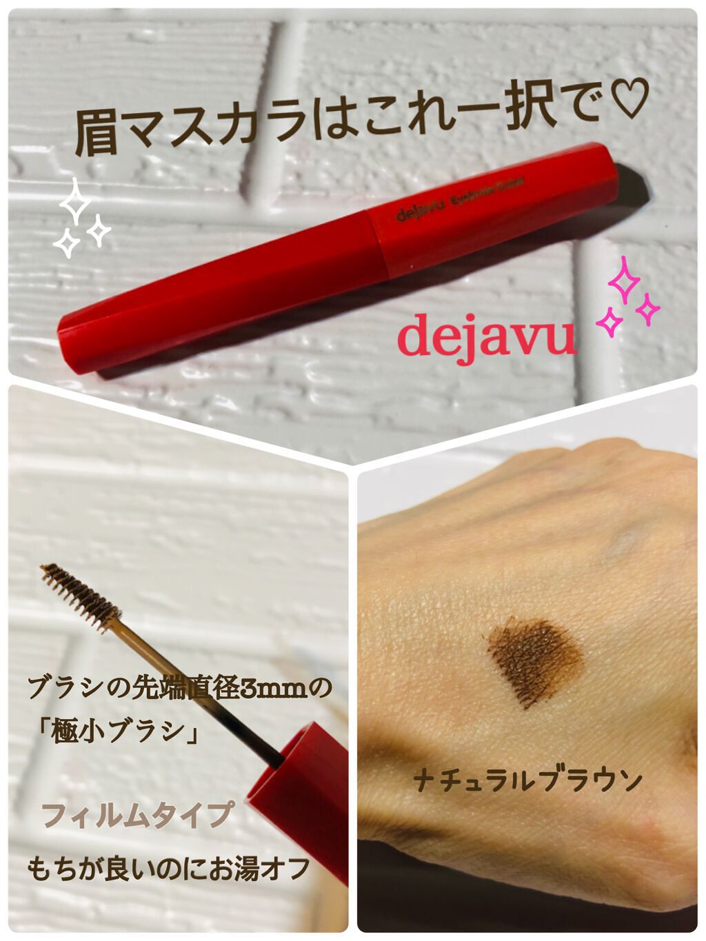 デジャヴュ「フィルム眉カラー」アイブロウカラーナチュラルブラウン使い切ったぁ〜ブラシが極小ですごく、眉に塗りやすい極細ブラシなので毛の流れを整いやすいのよ固まらずにふんわり眉毛が染まる今度は、ピンクブラウンが欲しいなぁ。。。#デジャヴュ#デジ...