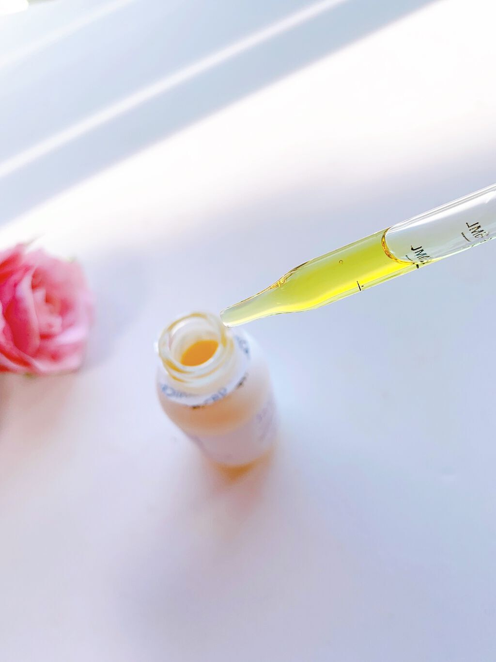 美容クリニックなどで「ケミカルピーリング」として使用される成分や、ナイアシンアミドなどが配合された美容液です。 毛穴の黒ずみやざらつきにアプローチしてくれることを期待して使っているよ。 私は、ザラつきや毛穴が気になるときや、生理前で肌がゴワついてるなって時に使っています。 量を調節しやすいスポイトタイプ。 とろみのある美容液なので、スポイトは太めだよ。 私は化粧水で肌を整えた後に使ってる。 数滴手に取って、優しく馴染ませるよ。 ふっくらとろみがあって、スルスル肌に広げられるから、摩擦レスな使い心地なのが気に入ってる。 ざらつきが気になる所は2度付けするよ。 最後に優しくハンドプレスして馴染ませています。 とろみがあるけど、馴染むとベタベタしない使用感なので、美容液のペタつきが苦手な方でも気持ちよく使えそう。