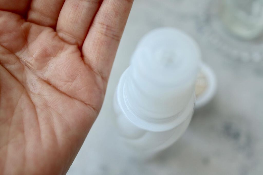 贅沢に美容成分を配合しているクリームは思ったより軽く、みずみずしく、素肌によくのびます。べとつきはしないかな。 プッシュしてエアレスボトルから新鮮なクリームが出てくるから量も調節しやすい🙆♀️ クリームはジェルのようにみずみずしいよ。少し高級化粧品によくあるような独特の香りがします。 ピンク色のエアーレスのボトル プッシュするとクリームが出てきます。