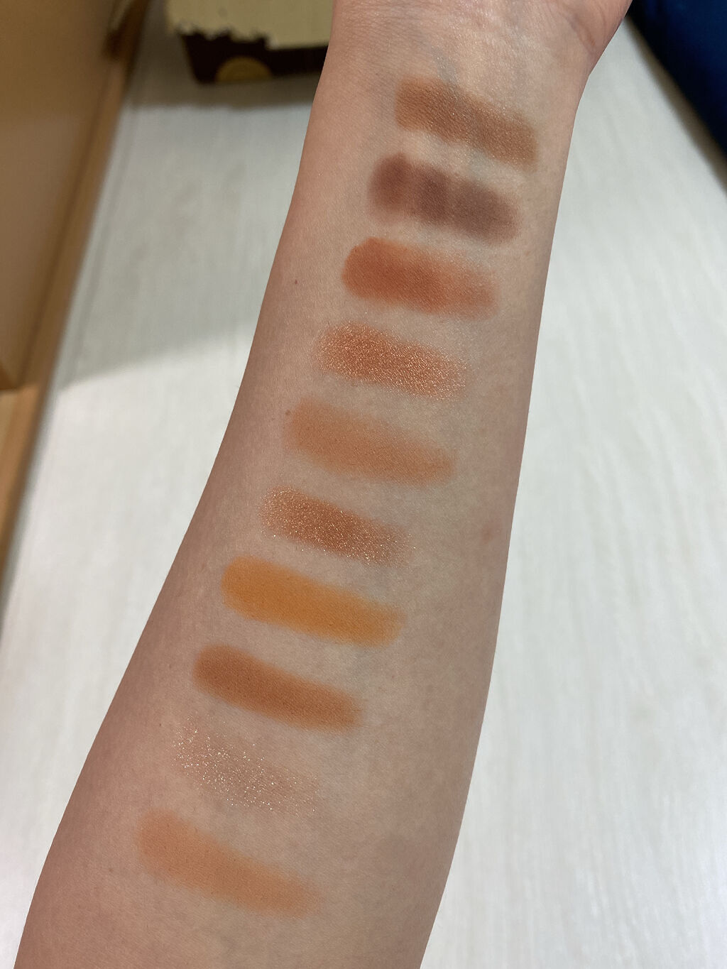 このパケと色味ヤバイ🥺‼️ クリアのケースってズルイ🥺‼️笑 実際に使用してみた感じ ブラシでマットのアイシャドウとると粉とびが気になりました。 グリッターもラメも色合いも 想像通りで 捨て色も無く全部が可愛いい🥺🥺 1番右下のラメを 涙袋にのせるとめっちゃ可愛かった😍 このパレット本当好きだ〜❤️❤️ 秋っぽいカラーでオススメです🙆♀️✨ 買って良かった🤤💓