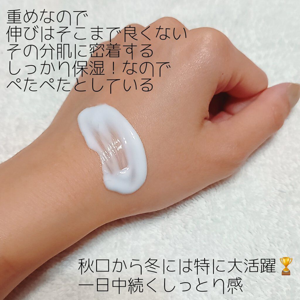 実力派クリームブランドのボディ用乳液乾燥肌なので、この季節でもしっとりタイプを購入しました。コクのあるミルクでクリームよりも軽いけれど、セラミドやヒアルロン酸、トレハロース配合でしっかり油分を感じるテクスチャーです。ベタベタしないので、...