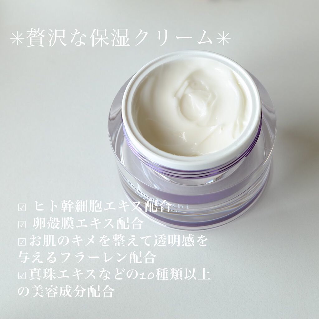 - 乾燥状態によるエイジングサインに、ハリとツヤとうるおいをあたえる極上な保湿クリーム。独自の「ラスターヴェール処方※1」が表面と角層内部にまでうるおいをとどけ、お肌に水面を感じるほどの水光肌に導きます。お肌にするすると溶け込むテクスチャーと、さらっとした軽い仕上がりと使い心地の気持ちよさをを追求しました。 オールインワンクリーム(ローション・乳液・美容液・クリーム・マッサージクリーム・ナイトパック)としてもご使用いただけます。 ※1:ヒト脂肪細胞順化培養液、加水分解卵殻膜、フラーレン、加水分解コンキリオンを独自に配合した処方