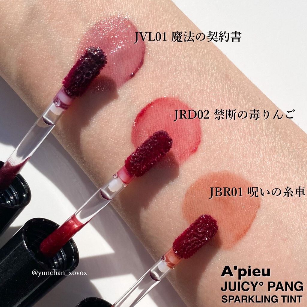 - Point 1 ジューシーなもぎたて果実のような発色が長時間続く Point 2 キラキラ輝くスパークリングジュエリーパウダー配合 Point 3 リップケアオイル配合で、クリアな光沢感のある仕上がり RD03、CR02は公式オンライン限定発売