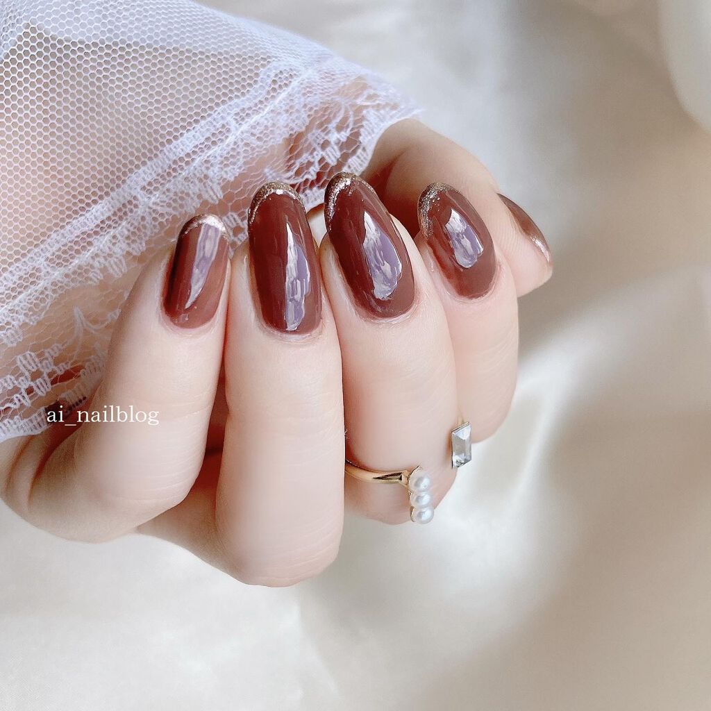 秋になるとやりたくなるブラウンネイル フレンチラインは金箔を使いました✿ キャンメイク (@canmaketokyo ) ・チャイティーラテ ネイルホリック (@nailholic_kose ) ・BR307