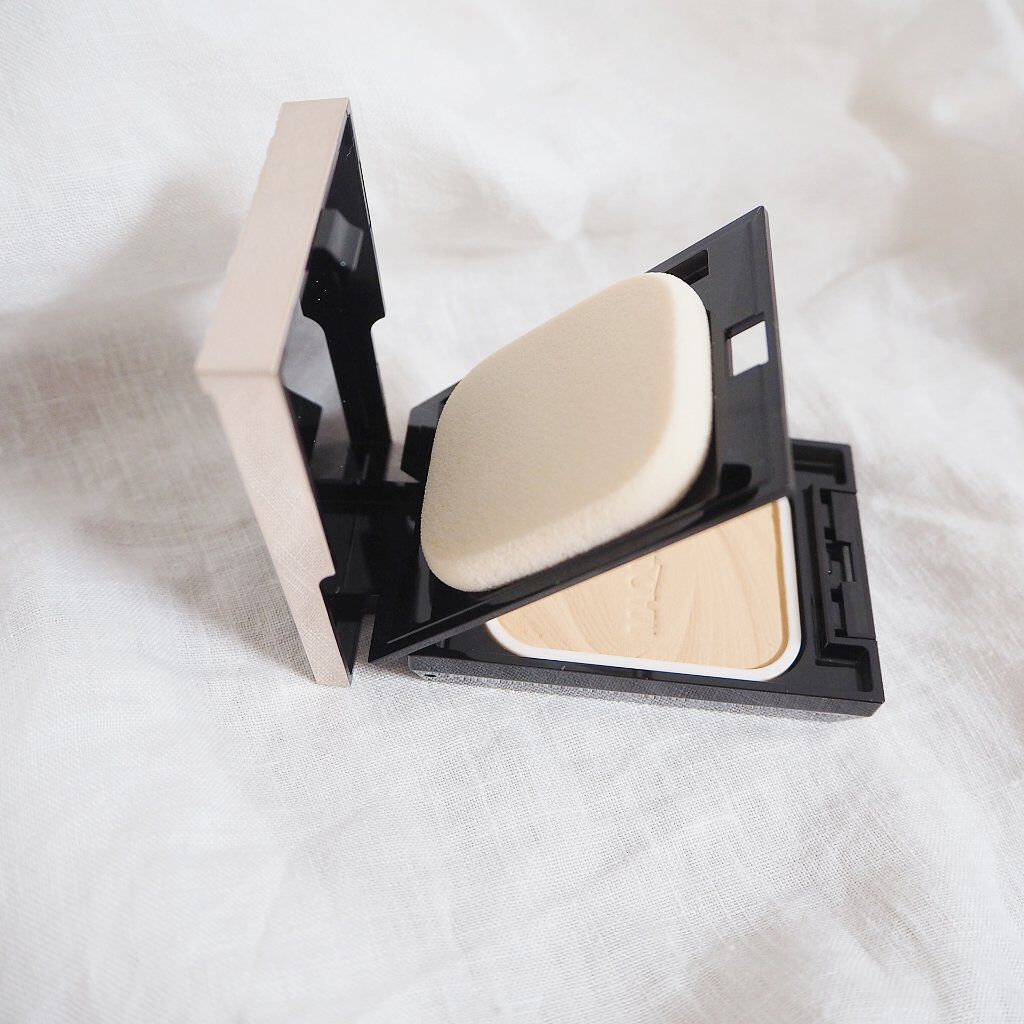 ふんわりとした仕上がりながら自然なツヤ感を演出するパウダーファンデ◎ 資生堂独自の「ムースプレス製法」により、美容液水とパウダーをムース状にして固めた軽やかなテクスチャーが特徴です。 肌に溶け込むようななめらかなフィット感で、毛穴や色ムラをふんわりとカバーしてくれる感じ。