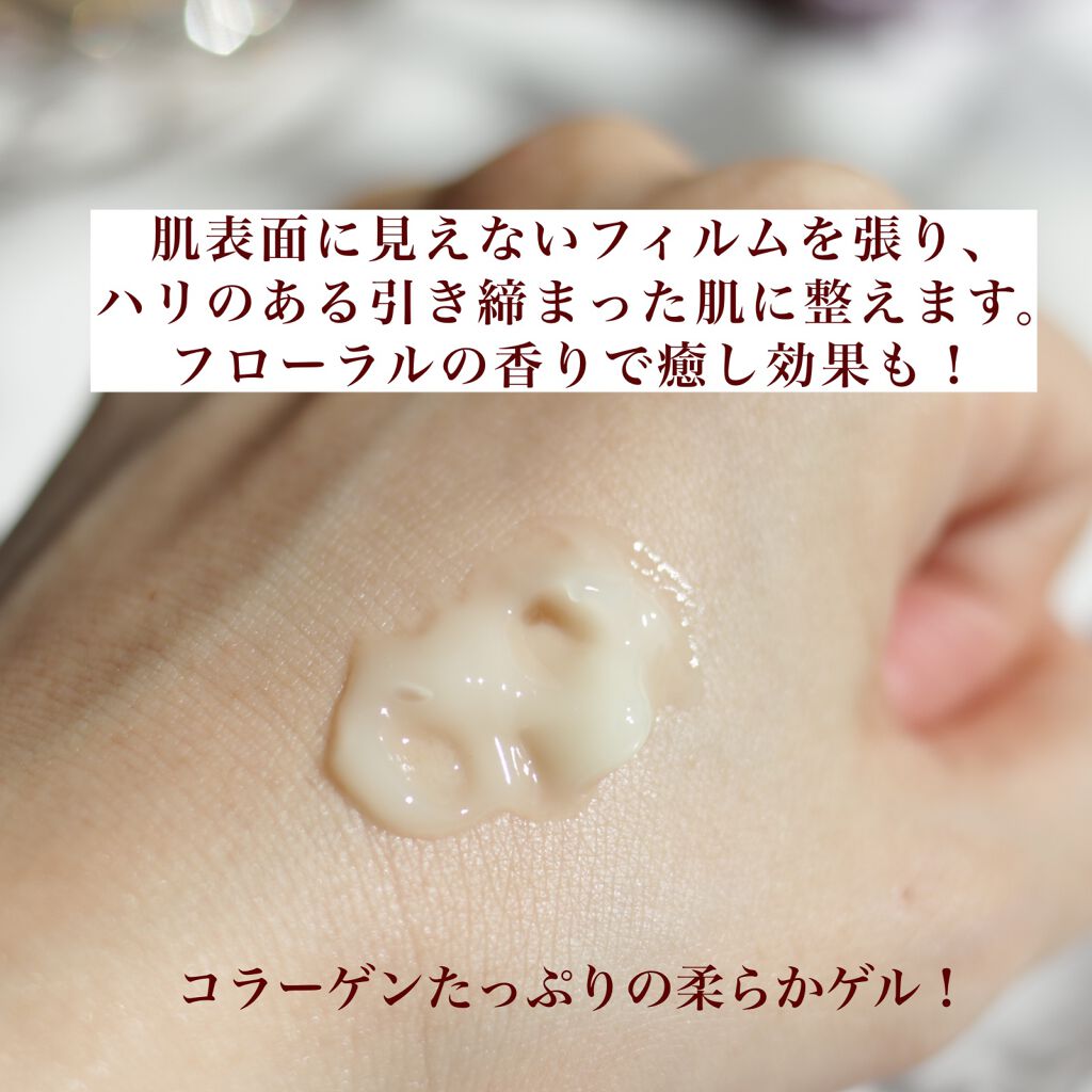 ぷるんとろんと柔らかい濃密なゲルテクスチャーです しっとりとベタベタしないちょうどよい保湿力でプルプルツヤツヤもっちりとお肌が潤い膜に優しく包まれているような感覚でした レチノールナイアシンアミドコラーゲンなどなど魅力的な成分がたっぷりなのもGood!