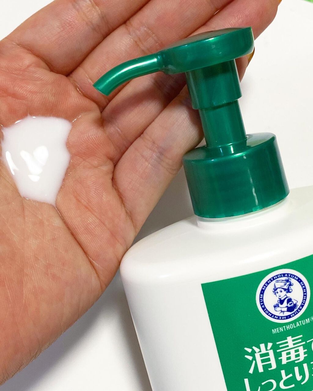 - 消毒できるしっとりした使い心地のハンドミルク。濡れた手にも使える。 「メンソレータム ハンドベール ウィルフリーミルク」は、保湿成分※1を配合した、手指消毒用ハンドミルク。べたつかず肌になじみやすいミルクタイプで、手を洗った後の濡れた手にも乾いた手にも、そのまま使えて便利です。 有効成分「ベンザルコニウム塩化物」で手指を消毒。保湿成分「グリセリン」や2種の植物由来オイル※2を配合。消毒で荒れが気になる手にも使えます。 ポンプタイプなので、キッチンや洗面所などの水周りなどや玄関などに置いて、気になる時にさっと消毒できます。お食事前の消毒にも。 ※1:グリセリン(保湿成分) ※2:アルモンド油(製剤の軟化剤)、ユーカリ油(清涼剤)