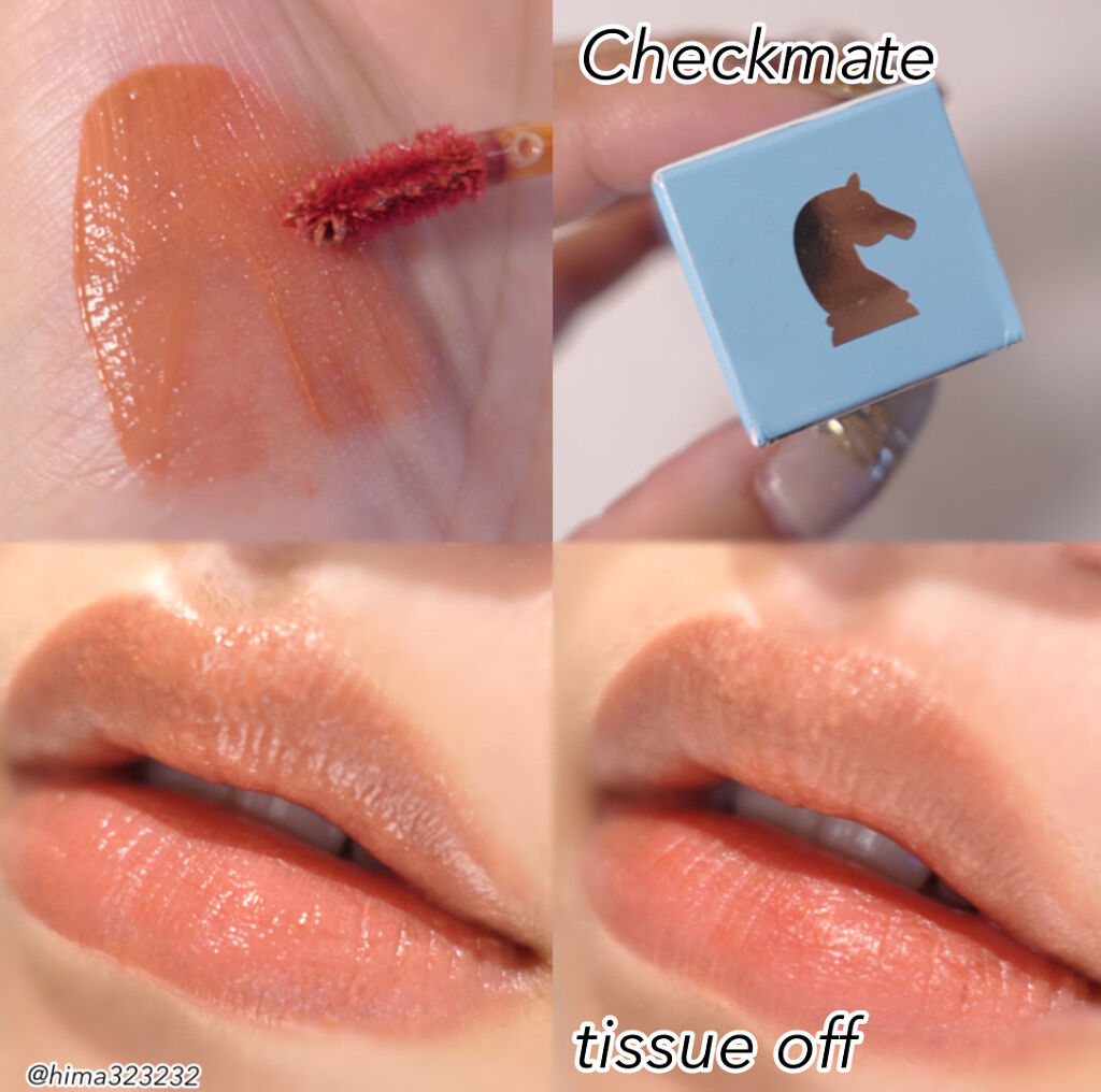 マスクでも落ちにくいティント❣️ YouTuberの藤子さきさんプロデュースブランド! まず見た目の涼しげなパッケージが目を惹きます! バニラのような甘く良い香りがします♪ ・Break&run (ブレークアンドラン)-垢抜けダスティローズ(ブルベ夏冬) ・Royal Flush(ロイヤルフラッシュ)-透き通るアプリコットオレンジ(イエベ春秋) ・Checkmate(チェックメイト)-アンニュイなベージュ(イエベ春秋) ・Bullseye (ブルズアイ)-大人の透明ピンク(ブルベ夏冬)