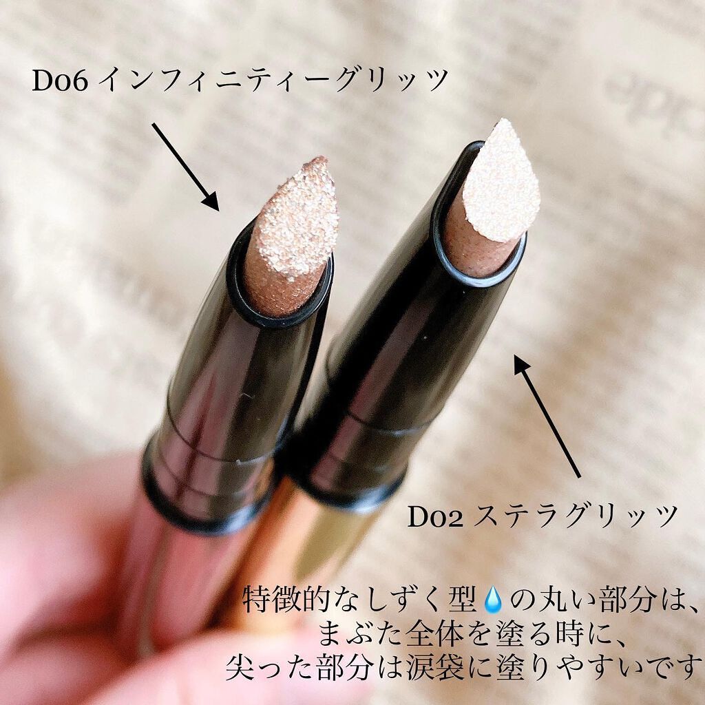 - ダイヤモンドのように輝くパールを演出するスティックタイプのアイシャドウ 存在感のあるグリッターで、塗りやすく密着力に優れていると評価されている商品です。 全カラー人気が高く、6種類の全カラーを購入したという声も良くいただきます。 スティックは一般的な円形ではなく、水玉の形で先端部分を使えば繊細なタッチが可能で、強力なウォータープルーフ機能により、水や汗にも簡単に消えない点が自慢できるポイントです。