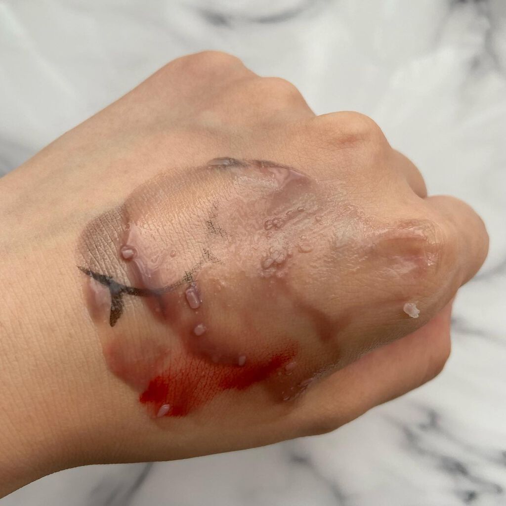 - パルミチン酸エチルヘキシル、トリ(カプリル酸/カプリン酸)グリセリル、エチルヘキサン酸セチル、ポリエチレン、トリイソステアリン酸PEG-20 グリセリル、トリイソステアリン酸PEG-5 グリセリル、シクロヘキサン-1,4- ジカルボン酸ビスエトキシジグリコール、フェノキシエタノール、トコフェロール、水、テトラヘキシルデカン酸アスコルビル、ヨーロッパキイチゴ種子油、グリチルレチン酸ステアリル、プロパンジオール、ジュンサイ葉エキス、グルコシルヘスペリジン、コメ発酵液、BG、加水分解コメヌカエキス