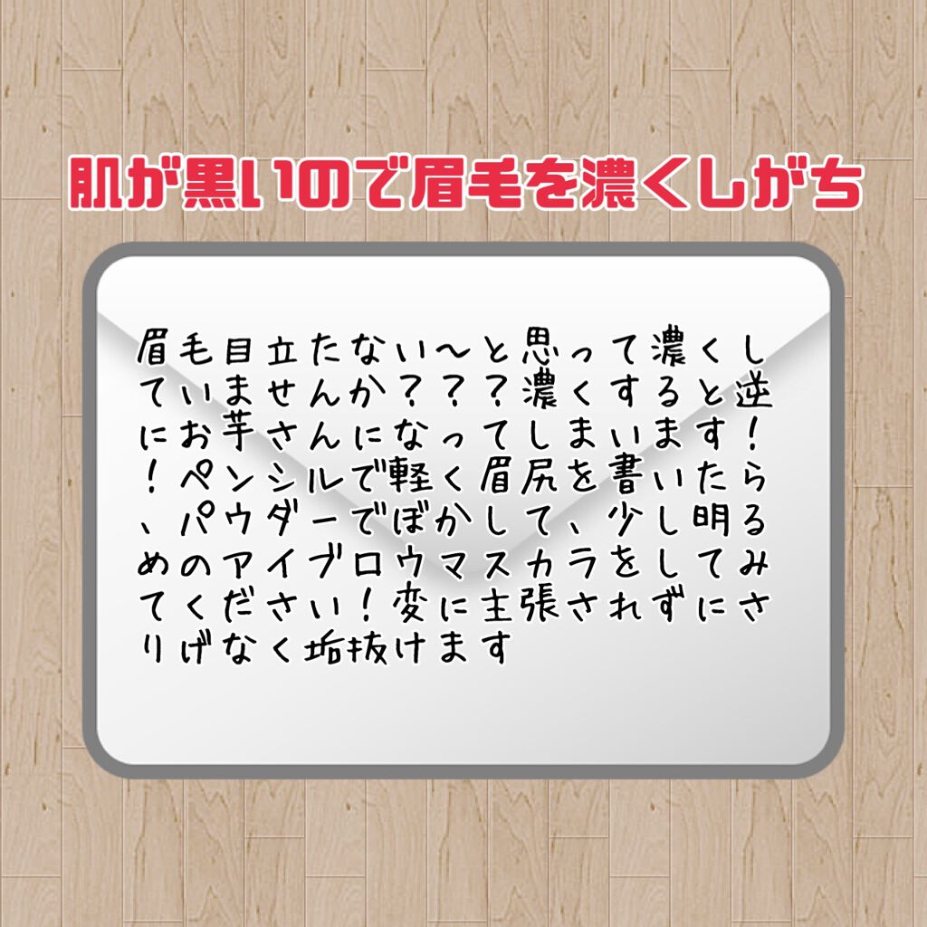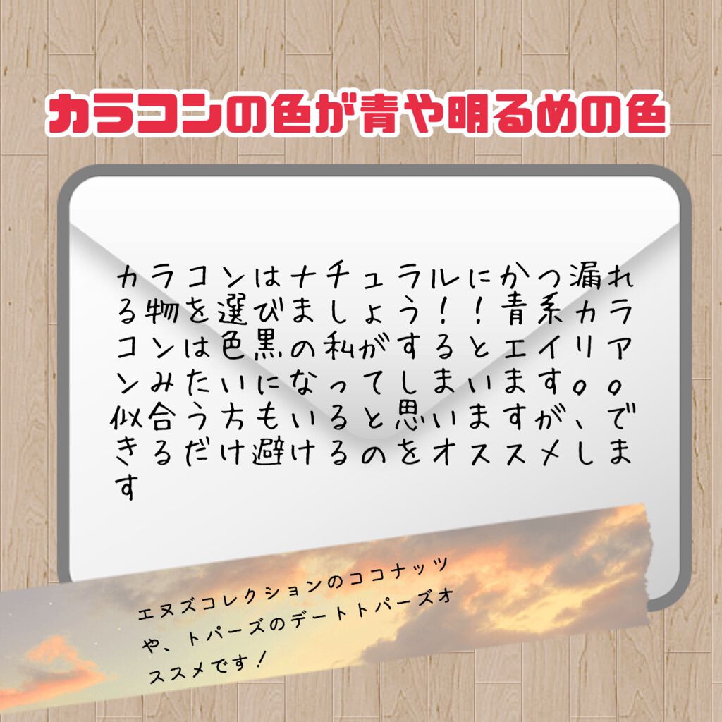 ほんとうに白すぎると白浮きして逆に不自然!マスクにもつきまくるしいい事ないです。。 自分はロムアンド使ってましたが、彩度が良すぎて浮いてしまいました。。。 本当にラベンダーのアイシャドウ憧れてました! 付けてみるとなんか違う感。。そこだけ明るくなってアリス・イン・ワンダーランドに行けそうな雰囲気に、、 そのアイシャドウはお蔵入りになりました! 肌が黒くてもアイブロウ濃くするのはNG!! ゴルゴサーティーンになっちゃいますよ!!! 色黒さんもハーフメイクしたりすると思います!!はーふめいくをする時は彩度の高すぎない物を選ぶと馴染みます エヌズコレクションのサイダーなどは肌なじみがいいです! デートトパーズはカラコン初心者さんにもオススメ出来る1品!!!