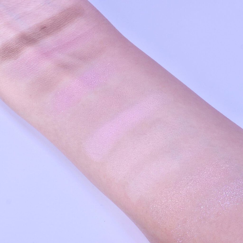 スウォッチです♥.ラメ好きはたまらない🥺🥺🥺ピンク多色ラメグリッターアイシャドウ比較です💁♀️💗✨✨YouTubeでも比較してます💜.右から♡カラーグラムトックミルクブリングシャドウ09ハッピーオーラ♡オピュアイグリッター09オーロラライト...