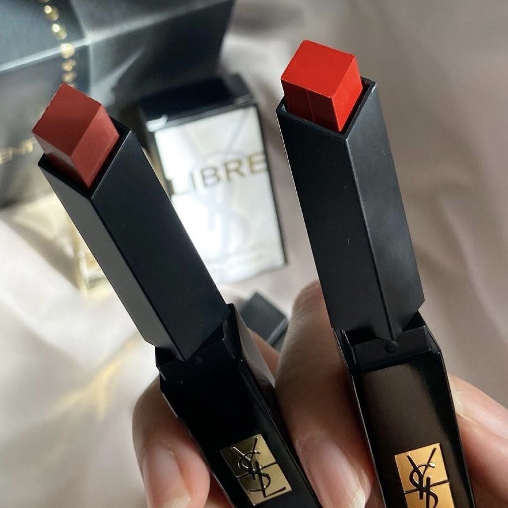 【秋冬にぴったりのご褒美コスメ】大人っぽいのにきらめく華やかさもあってご褒美にぴったりすぎる💎わたしのこの秋のご褒美コスメは、YVESSAINTLAURENTBEAUTEのリップ😌「ルージュピュールクチュールザスリムベルベットラディカル」の3...