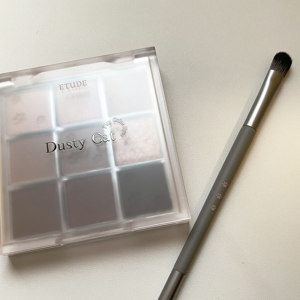 なぜバズっていないのか🤔? エチュード公式インスタを見てもらえるとわかりますが、メンズメイクに使っても本当にかわいいです! こちらは韓国の人気美容系動画を見てクリエイター LeoJ(レオ・ジェイ)とのコラボ商品になります。 普段はキャンメイクのパーフェクトマルチアイズ04と合わせて使っています。 パーフェクトマルチアイズと比べるとマット感強めです。 ラメはシルバーと偏光です! なにより猫の足跡が可愛すぎて最高です🐈🐾 私はQoo10でアイシャドウブラシがついてるものを買いました。 ブラシも柔らかくてチクチクせず、めちゃくちゃ使いやすいです。 小さい方の筆を使ってパールを涙袋の際にのせるとうるうるお目目ができます🥺🤍