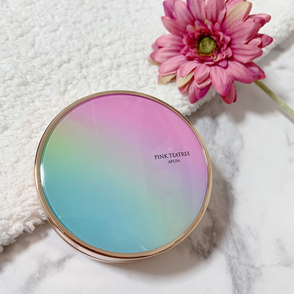 APLIN ピンクティーツリーカバークッション 21号ライトベージュ 2,490円(税込) 少量でよく伸びてハイカバー! 赤みやくすみをしっかりカバ一できるのに、厚塗り感のないなめらかな仕上がり♡ ハイカバーなのにナチュラルなツヤ感とサラッとしつつ、乾燥崩れしにくい仕上がりに感動します!!