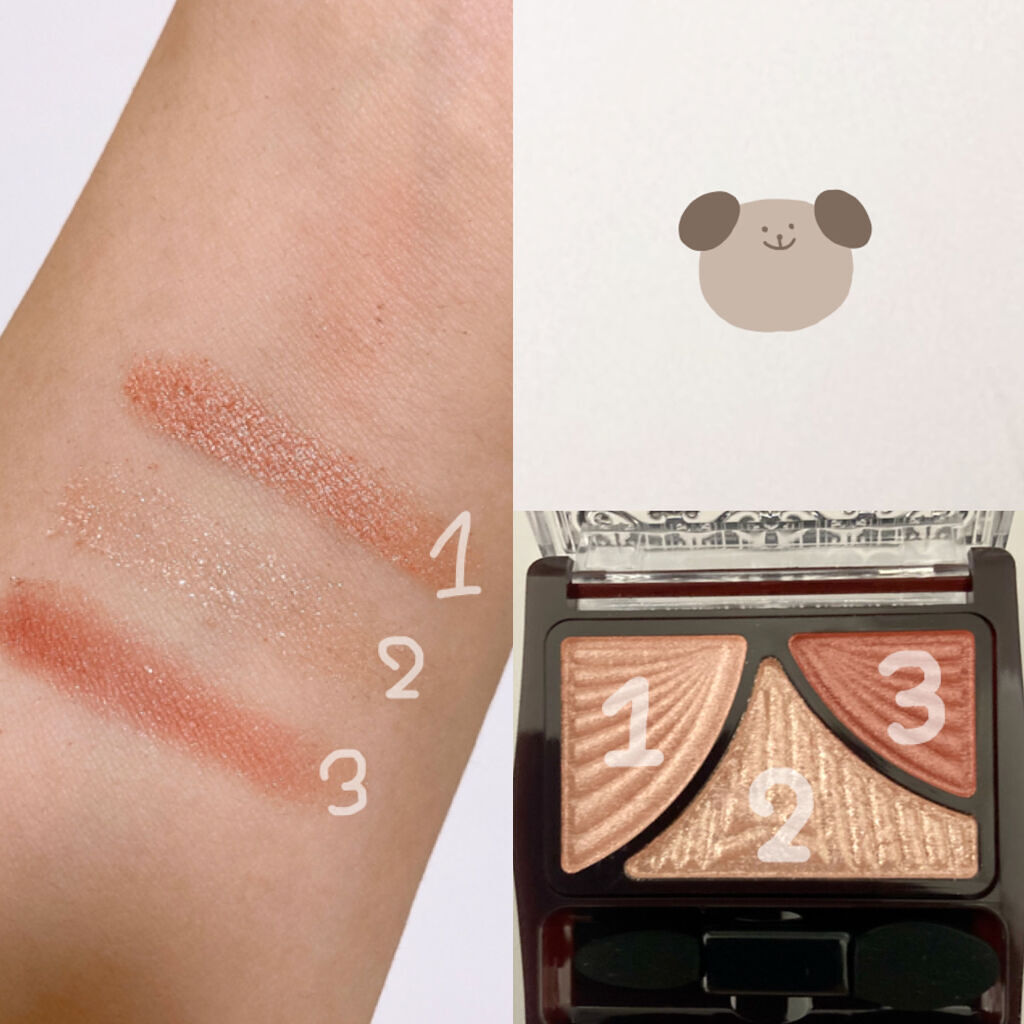 - パウダーなのにみずみずしい♥ 自然な立体感をつくりだす3色アイシャドウパレット 仕上げのコートで、ジューシー感&モチUP! メインカラー&ラインカラーはフィッティングオイル配合のしっとりパウダーで、 まぶたに吸いつくように溶け込み、ジューシーコートスフレで覆うことによって、 濡れたようにツヤめく愛されまぶたで透明感のある目元を演出します。